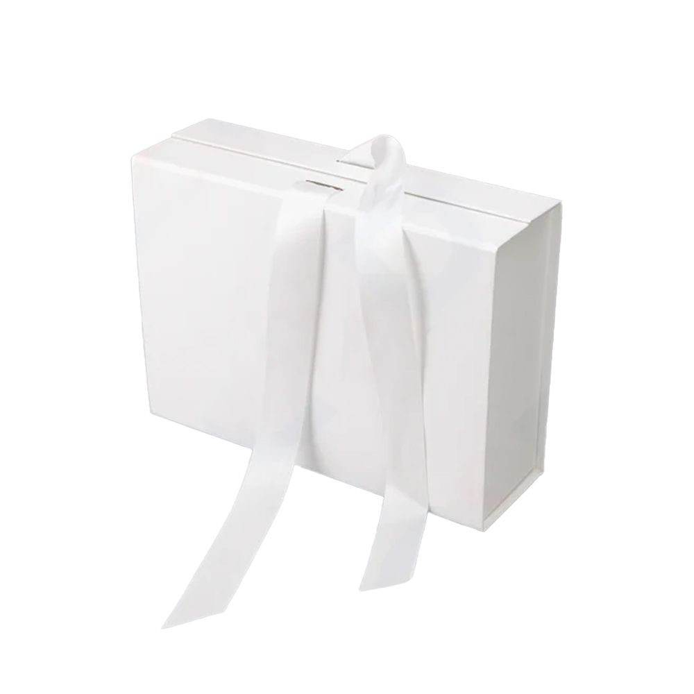 Декорирована атласной лентой, придающей изысканный и праздничный вид. При сборке используются самоклеящиеся ленты, обеспечивающие быструю и надёжную фиксацию коробки. Подходит для нанесения логотипа и брендированного дизайна.