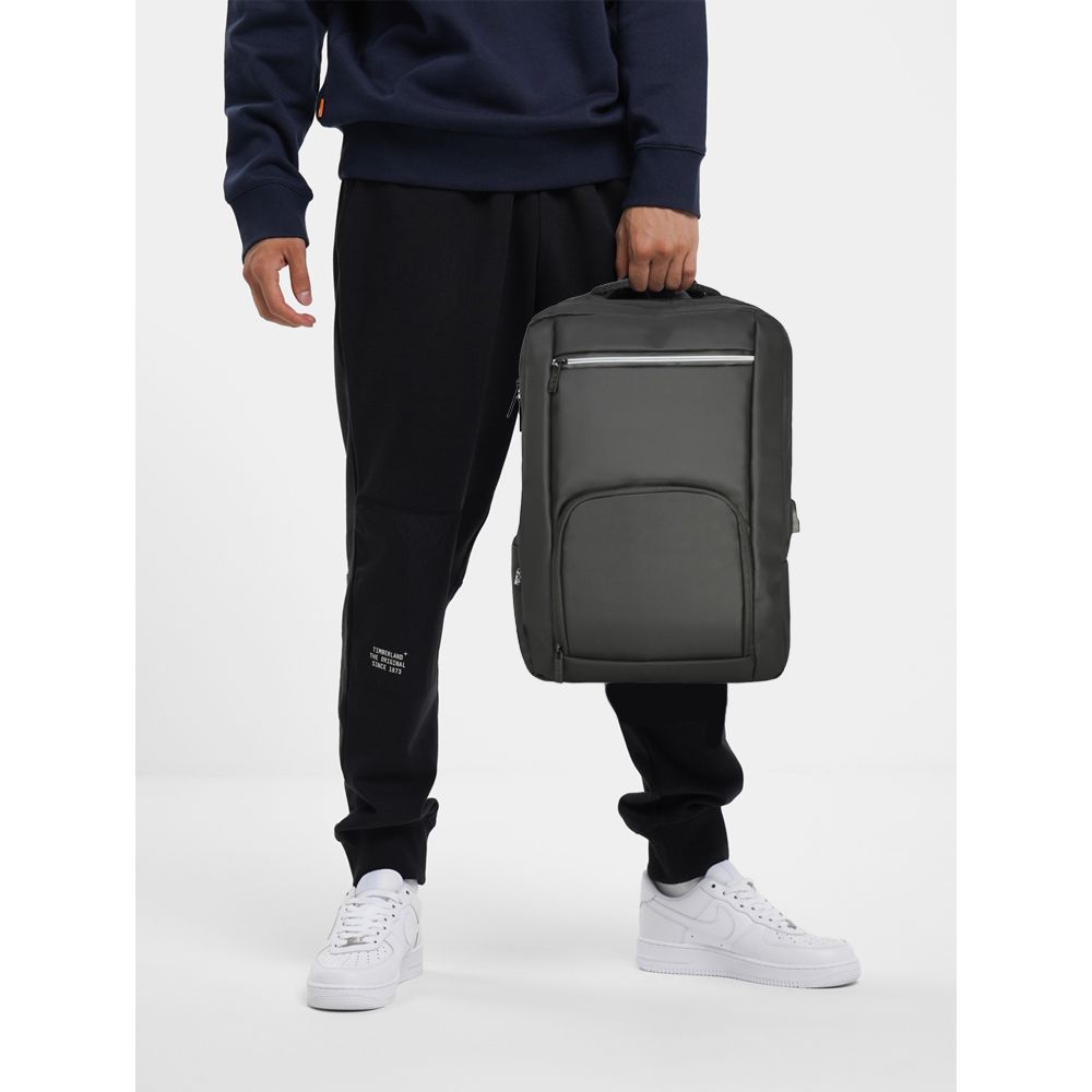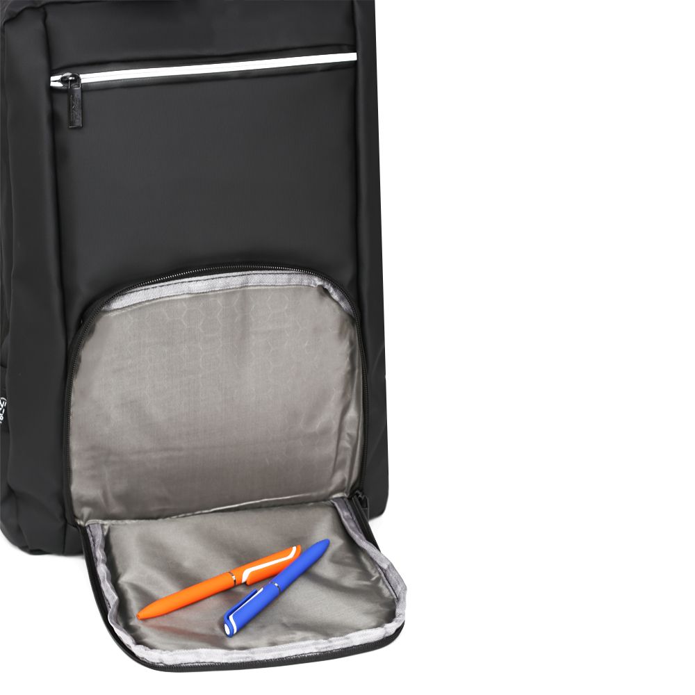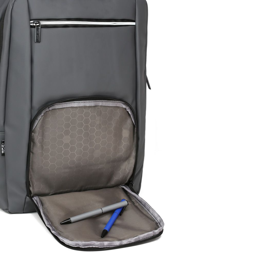 Рюкзак имеет продуманную конструкцию: одно основное отделение на молнии с мягким отсеком для ноутбука и внутренними карманами для кошелька, телефона и других мелочей. Внешние карманы на молниях и удобный боковой карман для бутылки или зонта. Встроенные светоотражающие элементы размещены на лямках и верхней части рюкзака для лучшей видимости в темное время суток.