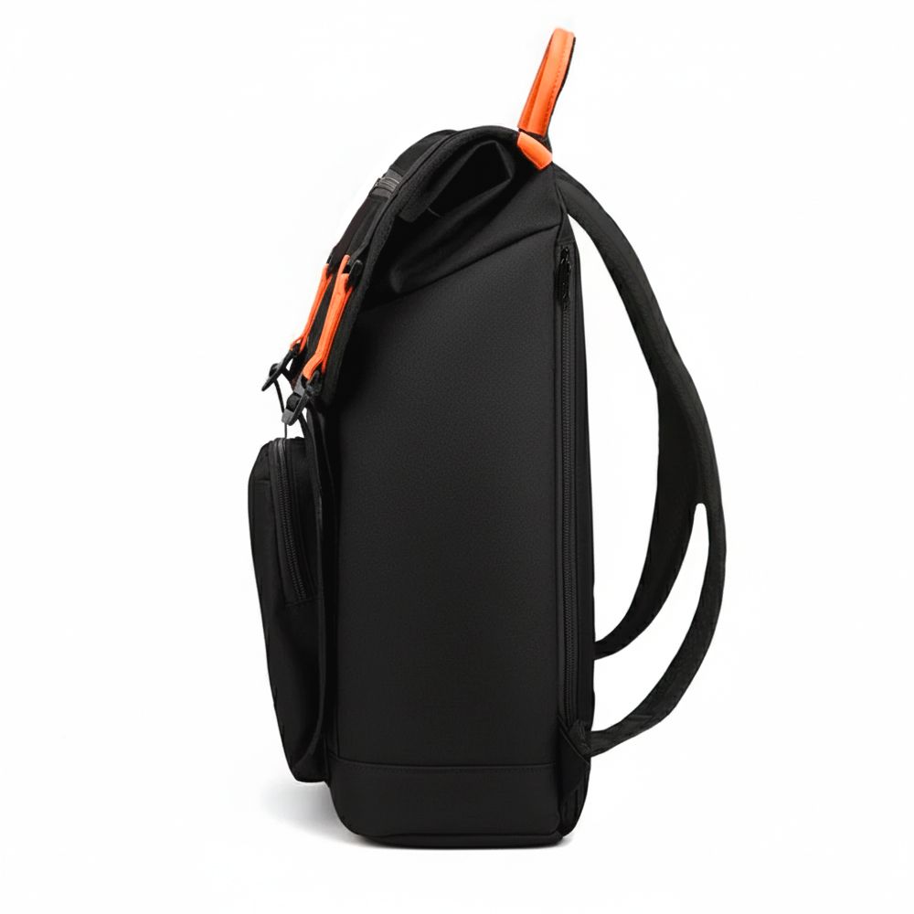 Рюкзак имеет продуманную конструкцию: большое отделение с мягким карманом для ноутбука до 15", дополнительные внутренние карманы для мелких вещей и аксессуаров, а также вместительный передний карман на молнии. Верхняя панель рюкзака откидывается вниз и фиксируется ремнями с застёжками. На ней расположено дополнительное отделение на молнии, а сбоку предусмотрен отдельный доступ в рюкзак через вертикальную молнию.