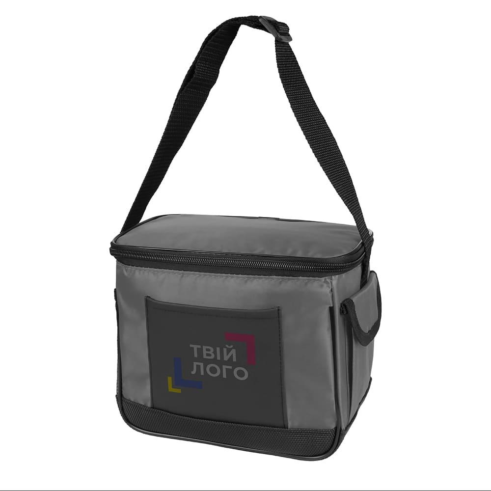 Компактная термосумка с карманом спереди и двумя боковыми карманами, что обеспечивает удобство хранения дополнительных предметов. Материал изготовления: полиэстер 70D с алюминиевой подкладкой толщиной 3 мм, что способствует сохранению температуры.