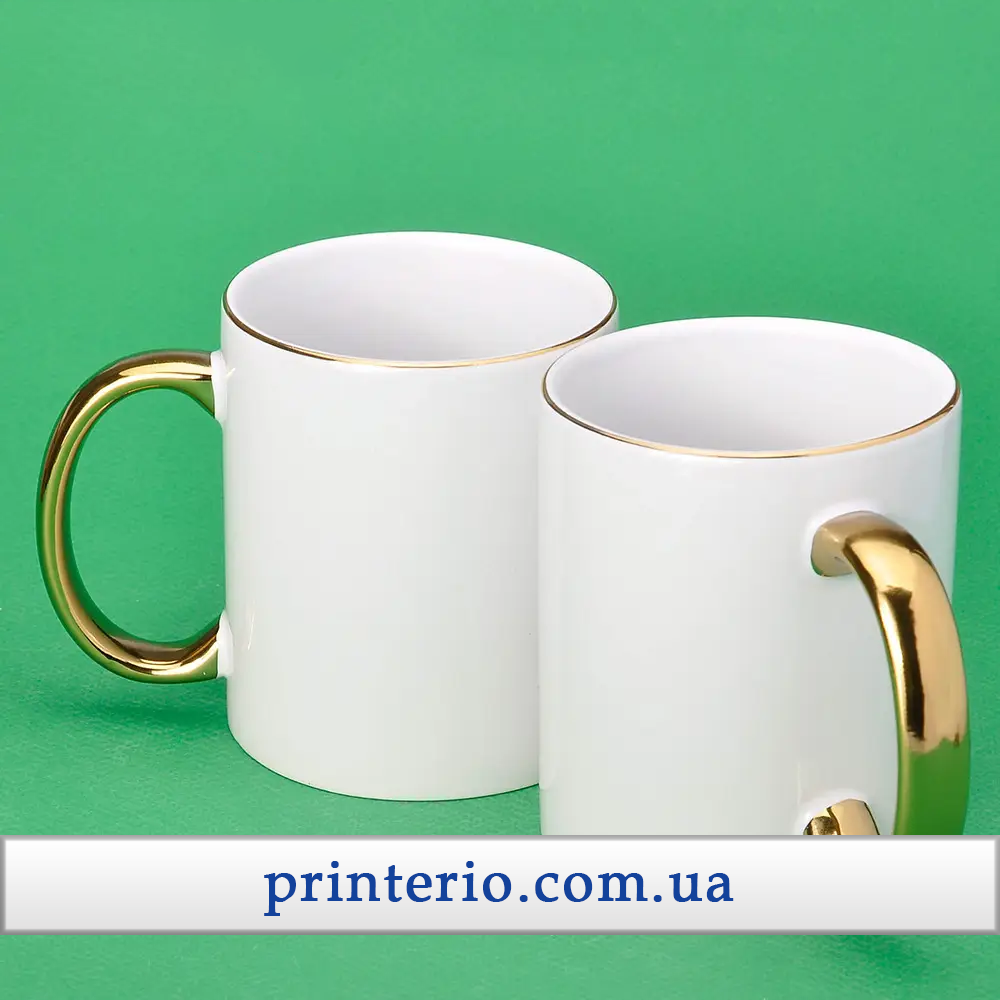 Чашка для сублімації Sublime PREMIUM з лого біла з золотим обідком та ручкою 330 мл