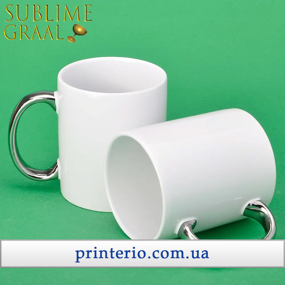 Чашка для сублімації Sublime з логотипом біла зі срібною ручкою 330 мл