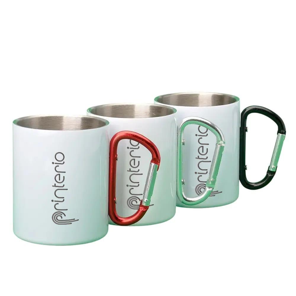 Кухоль металевий білий Sublime для сублімації із ручкою-карабіном 300 мл з логотипом