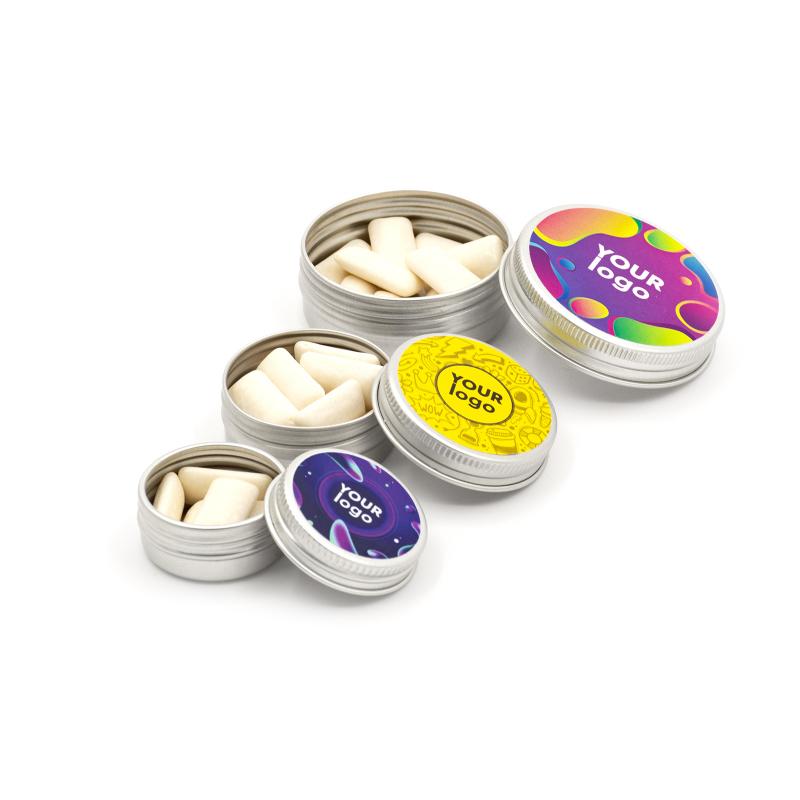 Оригінальний набір жувальних гумок у стильній алюмінієвій банці з індивідуальним логотипом — ідеальне рішення для промоакцій, виставок, подарунків клієнтам або корпоративних заходів.