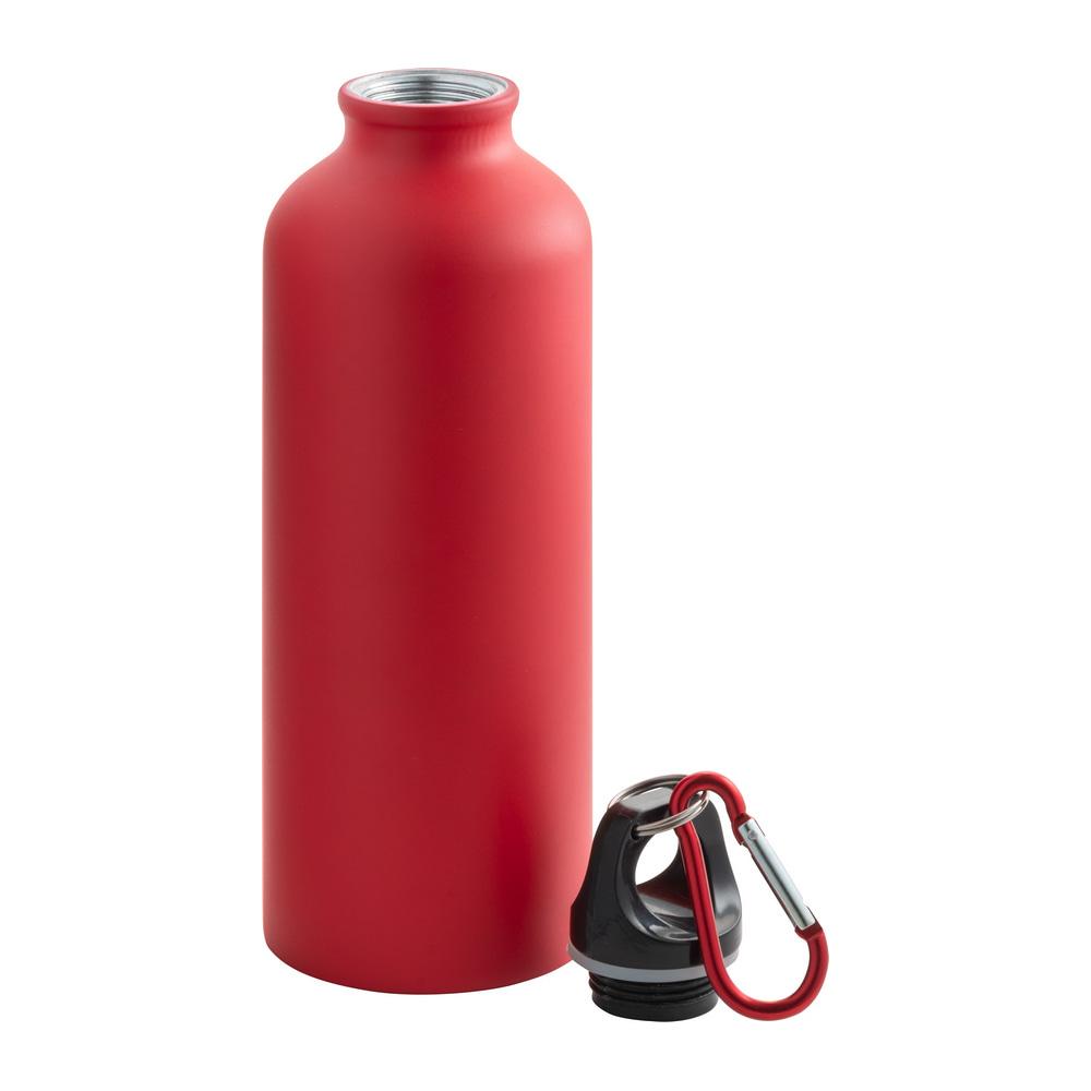 Пляшка в матовому алюмінієвому корпусі. Оснащена пластиковою пробкою та алюмінієвим карабіном для зручності транспортування. Зручний аксесуар для спорту та відпочинку.