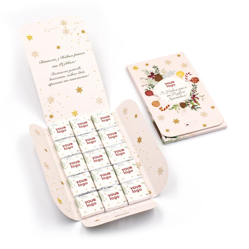 Наповнення: з чорним або молочним шоколадом. Ідеальний вибір для корпоративних подарунків та рекламних акцій.