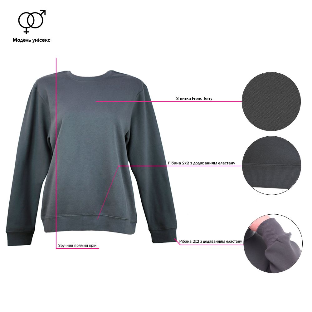 Унісекс світшот Nikibo Terry — практична модель з тканини French Terry (3-нитка), яка поєднує зносостійкість і комфорт.