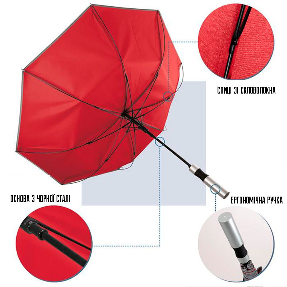 Зонт-трость автомат Reflecting антиветер с светоотражателем с логотипом