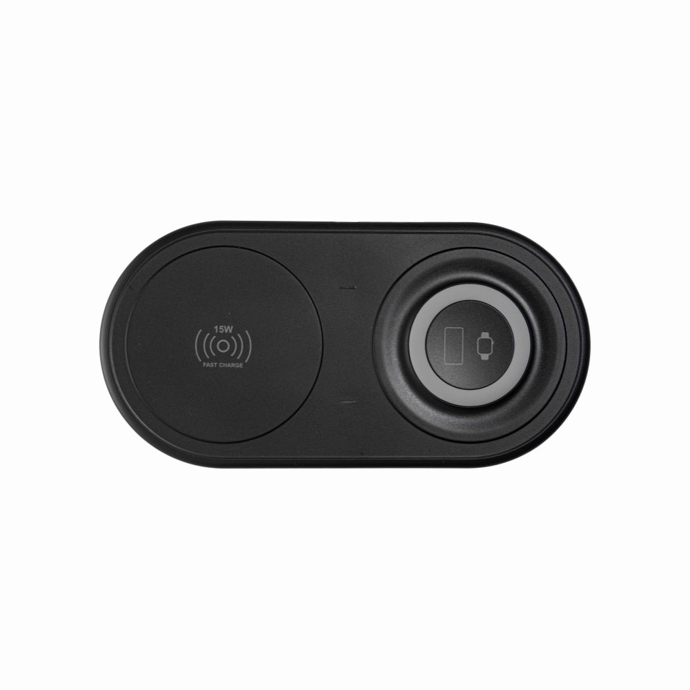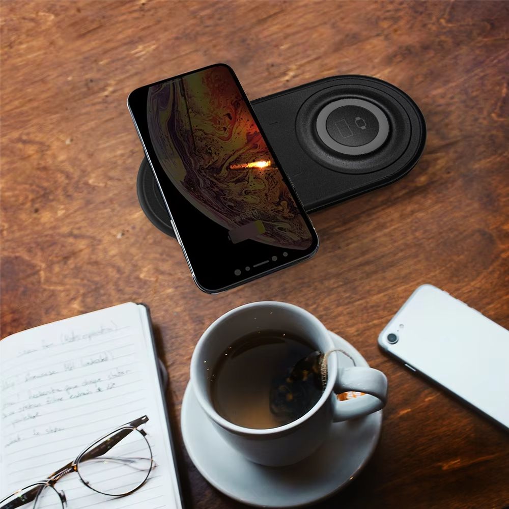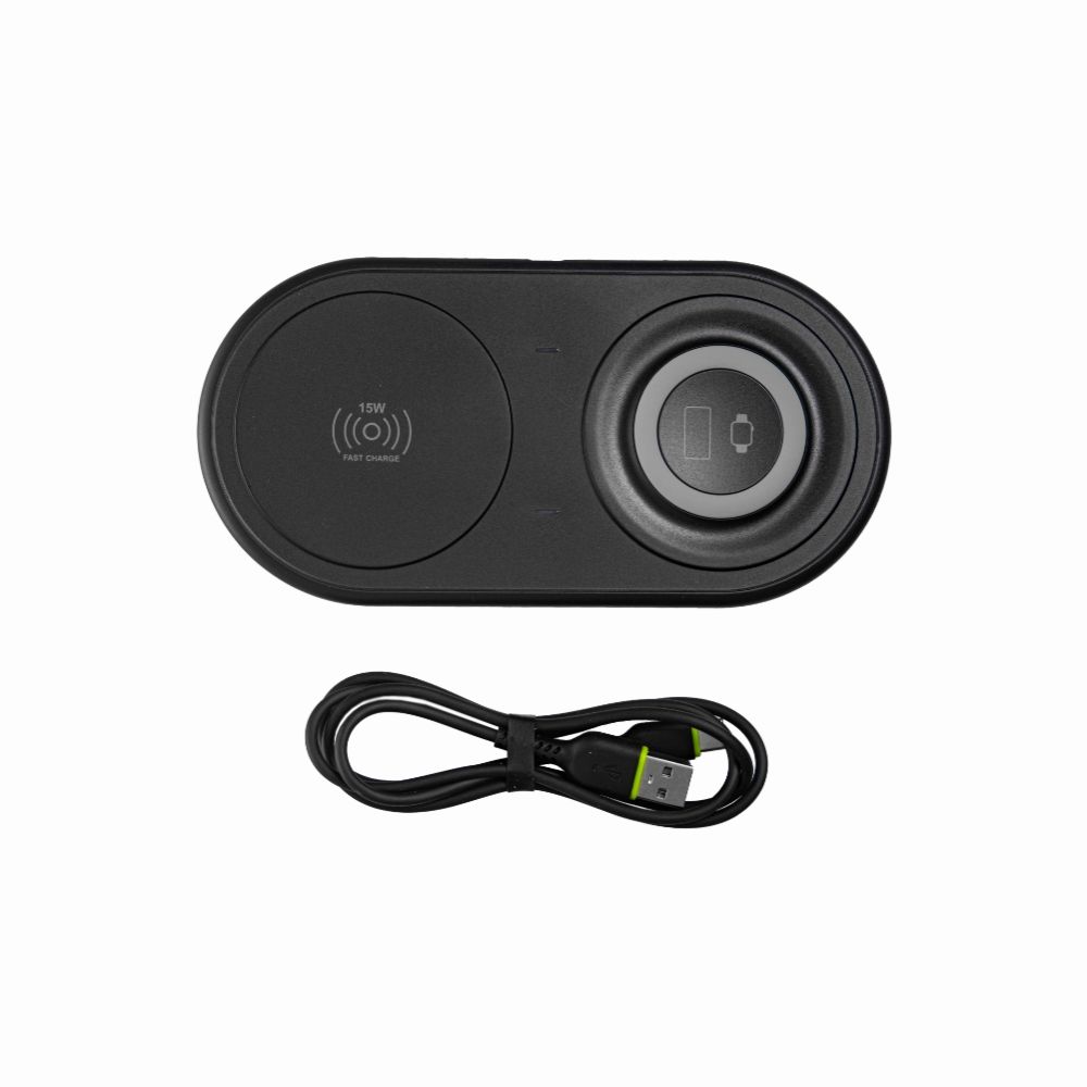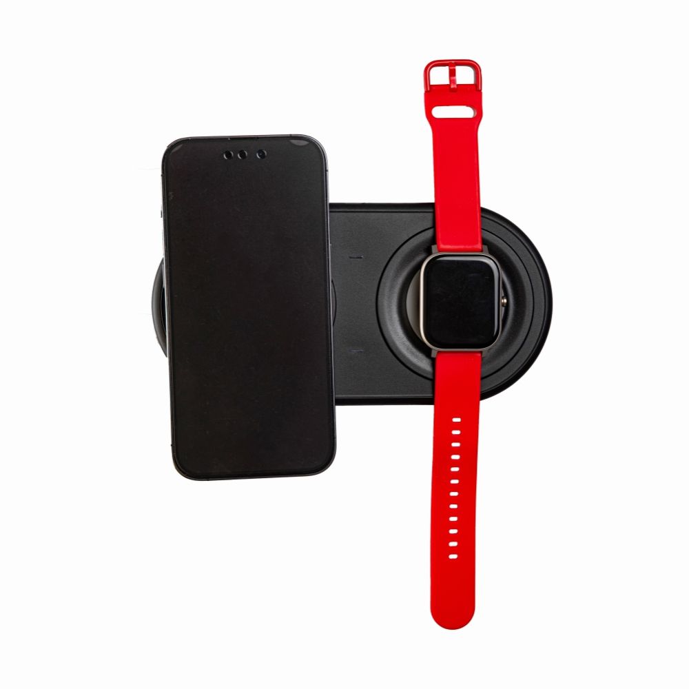 Мощность беспроводной зарядки – 15 Вт. Устройство предназначено для зарядки мобильных телефонов и часов iWatch. Чтобы обеспечить передачу энергии, телефон и часы просто кладут на зарядник лицевой стороной вверх.