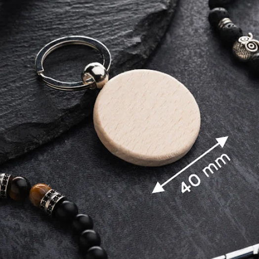 Представляем стильный брелок из натурального дерева круглой формы диаметром 40 мм. Идеальный для нанесения логотипа, этот брелок станет отличным аксессуаром, который придаст вашему ключевому набору элегантность и индивидуальность.