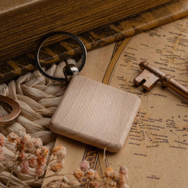 Придайте вашим ключам уникальный вид с нашим деревянным квадратным брелоком 40х40 мм под логотип!