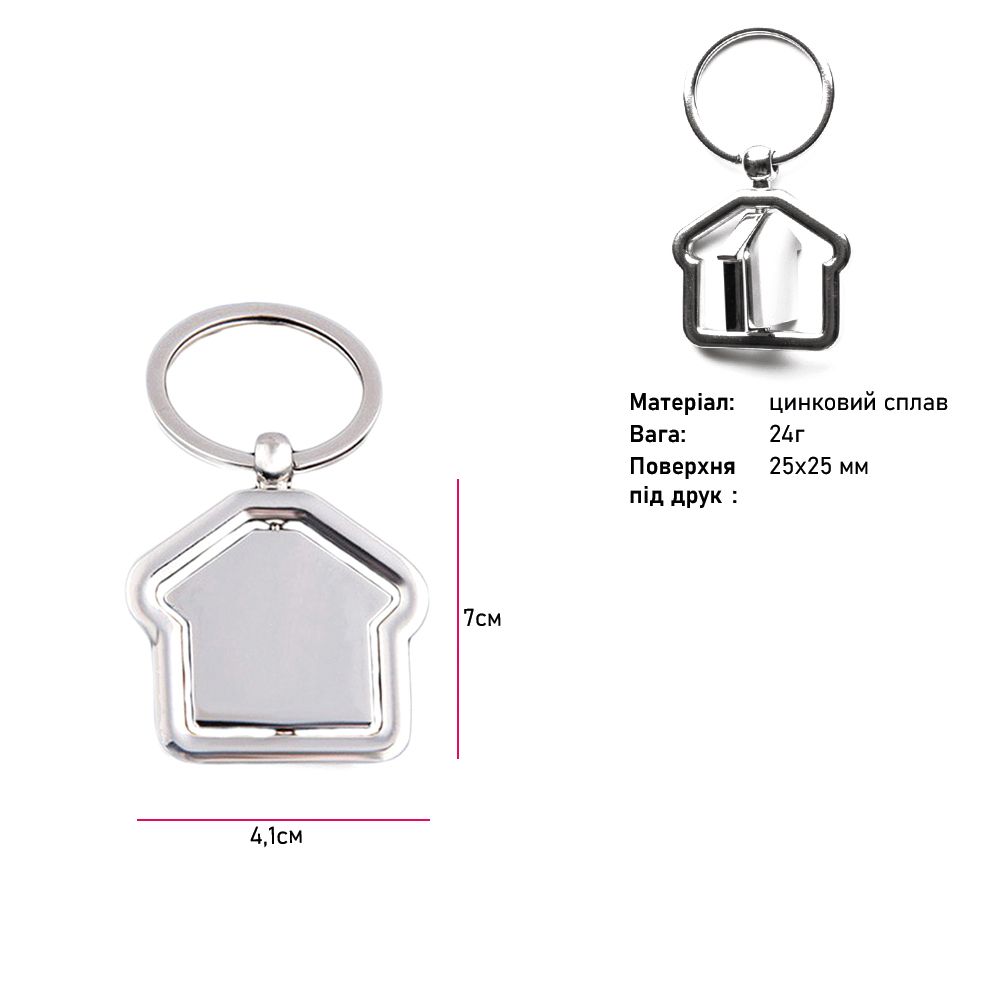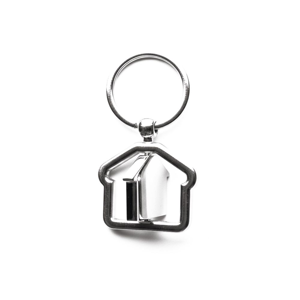 Особенностью данной модели является внутренняя вставка в форме домика, которая вращается, создавая динамичный и привлекательный эффект. Гладкая поверхность подходит для брендирования. Брелок может стать оригинальным корпоративным сувениром, подарком для клиентов и партнёров или эффективным рекламным носителем на выставках и промо-мероприятиях.