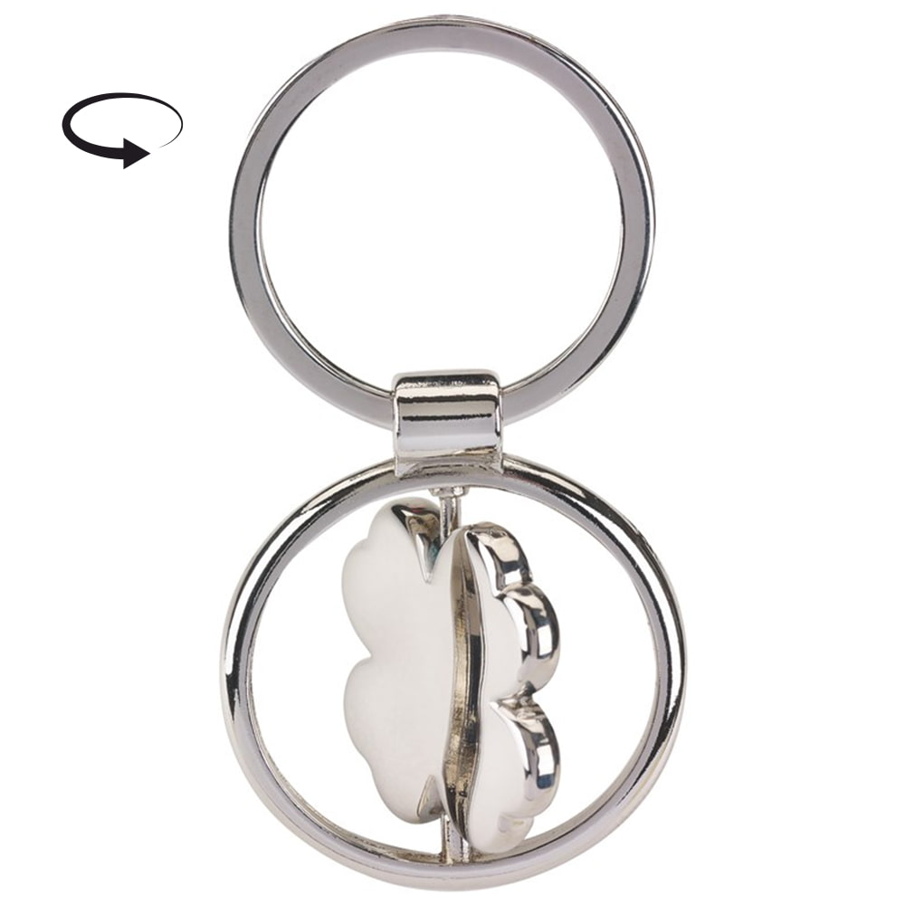 Брелок с вращающейся центральной частью в форме четырёхлистного клевера. Оснащен металлическим кольцом для ключей.