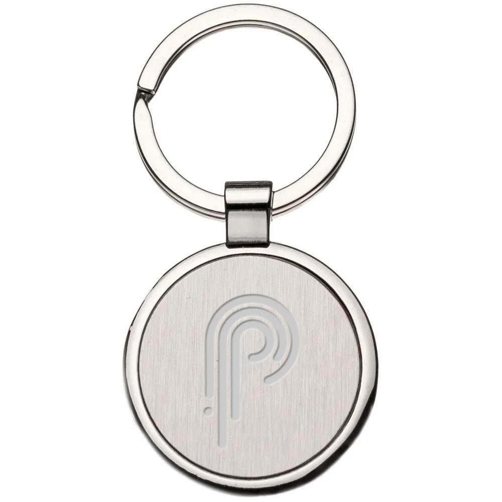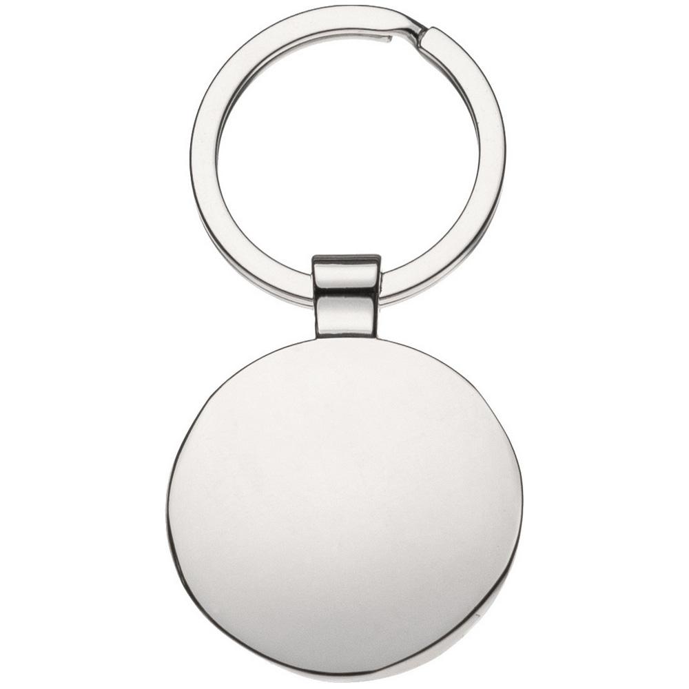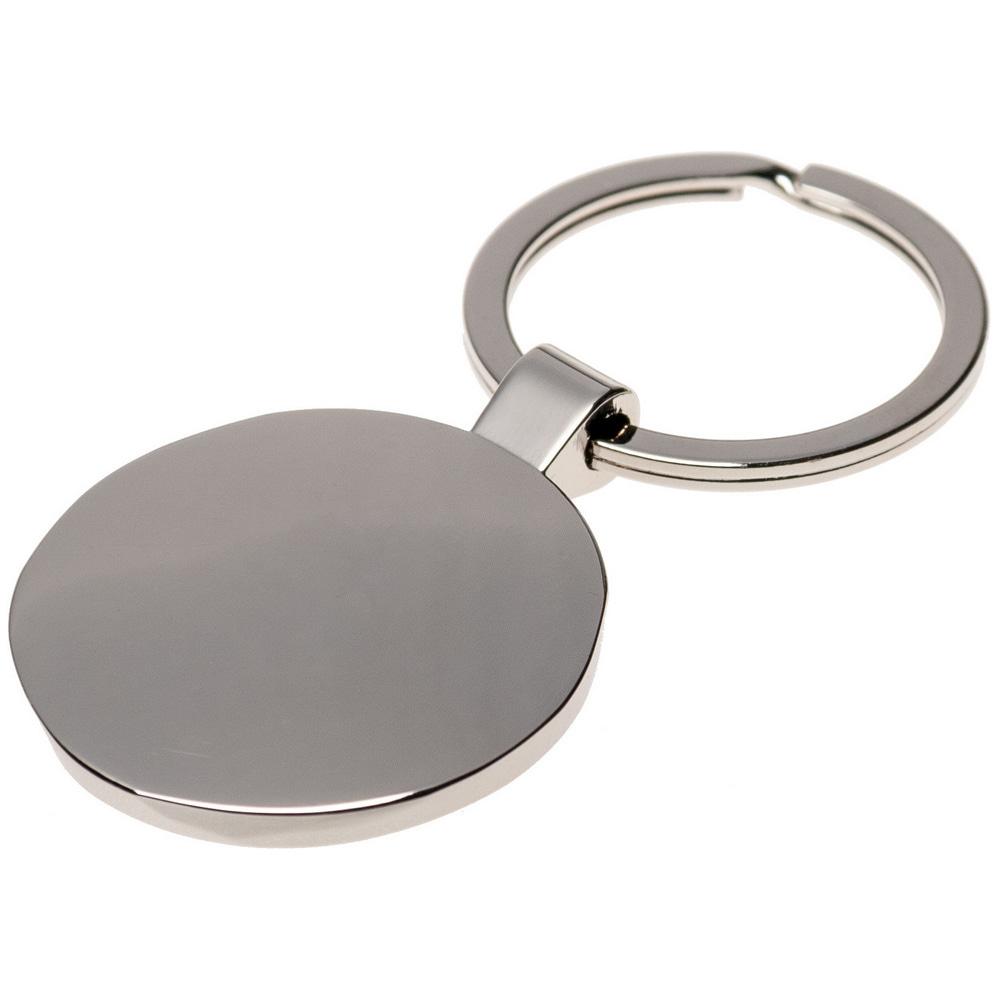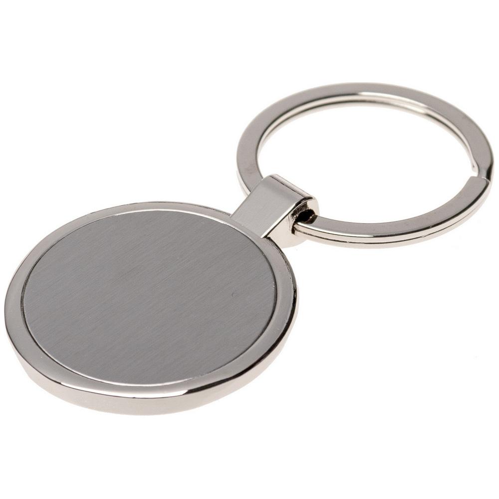 Металлический брелок круглой формы с кольцом для ключей. Лучше всего для гравировки логотипа Вашей компании.