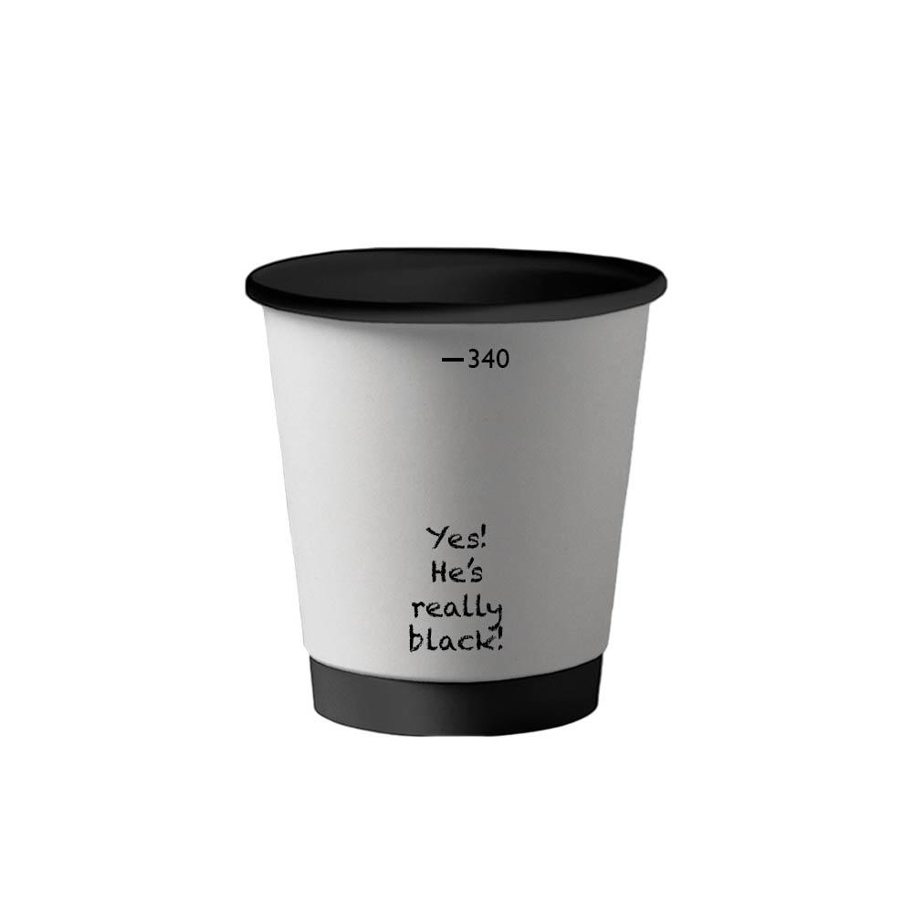 Бумажный стаканчик черный двухслойный 340 мл с лого