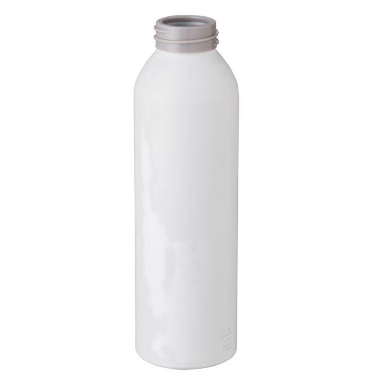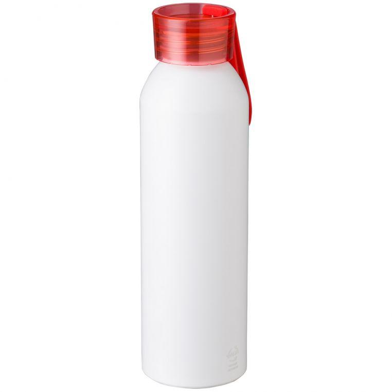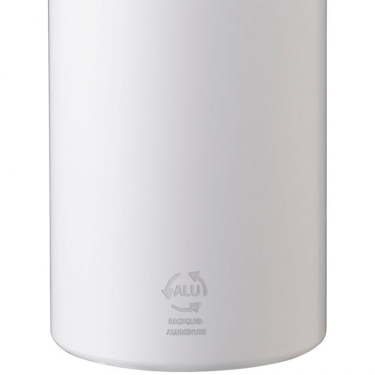 Бутылка в матовом алюминиевом корпусе. Оснащена прозрачной крышкой из полистирола и силиконовой лентой для удобства переноса. Удобный аксессуар для спорта и отдыха. Внизу на корпусе выгравирован логотип переработанного алюминия.