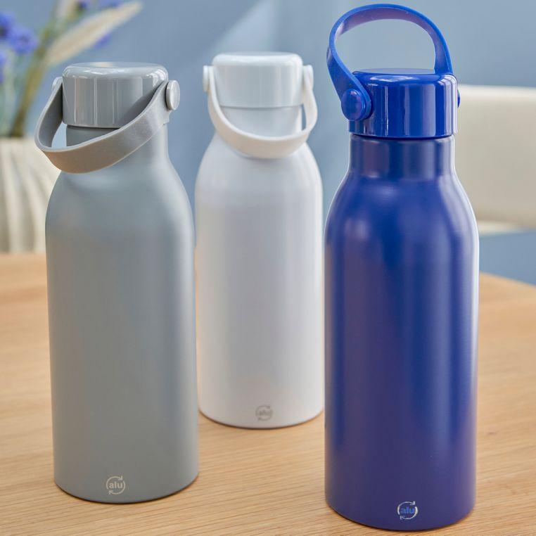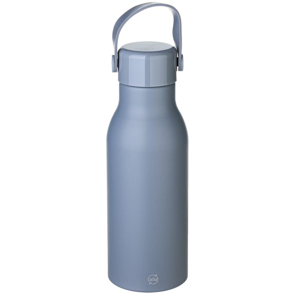 Бутылка в матовом алюминиевом корпусе. Оснащена крышкой из полипропилена и силиконовой ручкой для удобной переноски. Удобный аксессуар для спорта и отдыха. Внизу на корпусе выгравирован логотип переработанного алюминия.