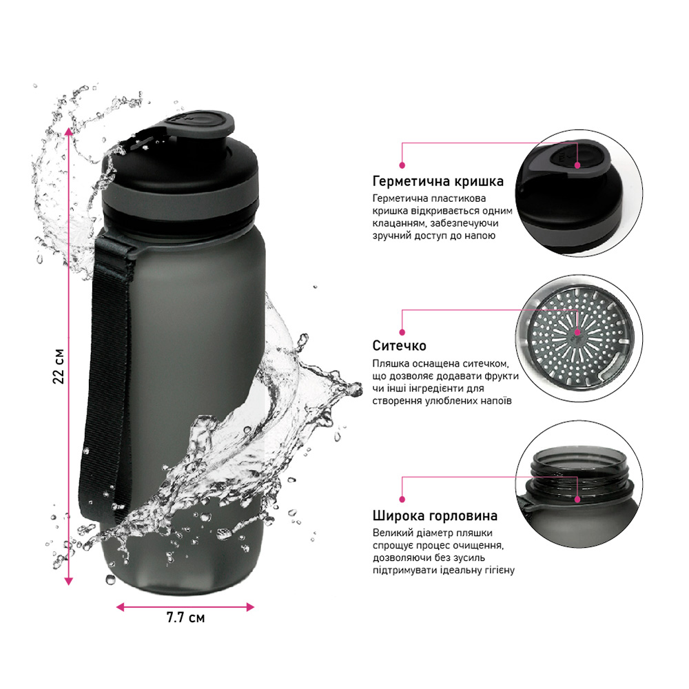 Универсальная тритановая бутылка для воды Flores объемом 650 мл от бренда Line Art — удобная и стильная многоразовая бутылка, созданная для комфортного ежедневного использования. Герметичная пластиковая крышка открывается одним нажатием (её можно открыть и закрыть одной рукой), обеспечивая удобный доступ к напитку. Бутылка оснащена ситечком, которое позволяет добавлять фрукты или другие ингредиенты для приготовления любимых напитков. Матовый корпус придаёт стильный внешний вид и обеспечивает приятные тактильные ощущения во время использования. Широкое горлышко упрощает процесс очистки, а прочный ремешок делает переноску более удобной. Бутылка Flores изготовлена из ударопрочного тритана, безопасного для здоровья (BPA free) и не вступающего в реакцию с напитками, сохраняя их натуральный вкус. Благодаря оптимальному объёму она станет незаменимым спутником в дороге, на тренировках или в офисе. Эргономичная форма обеспечивает удобство в использовании, а компактные размеры позволяют легко хранить бутылку в сумке или рюкзаке.