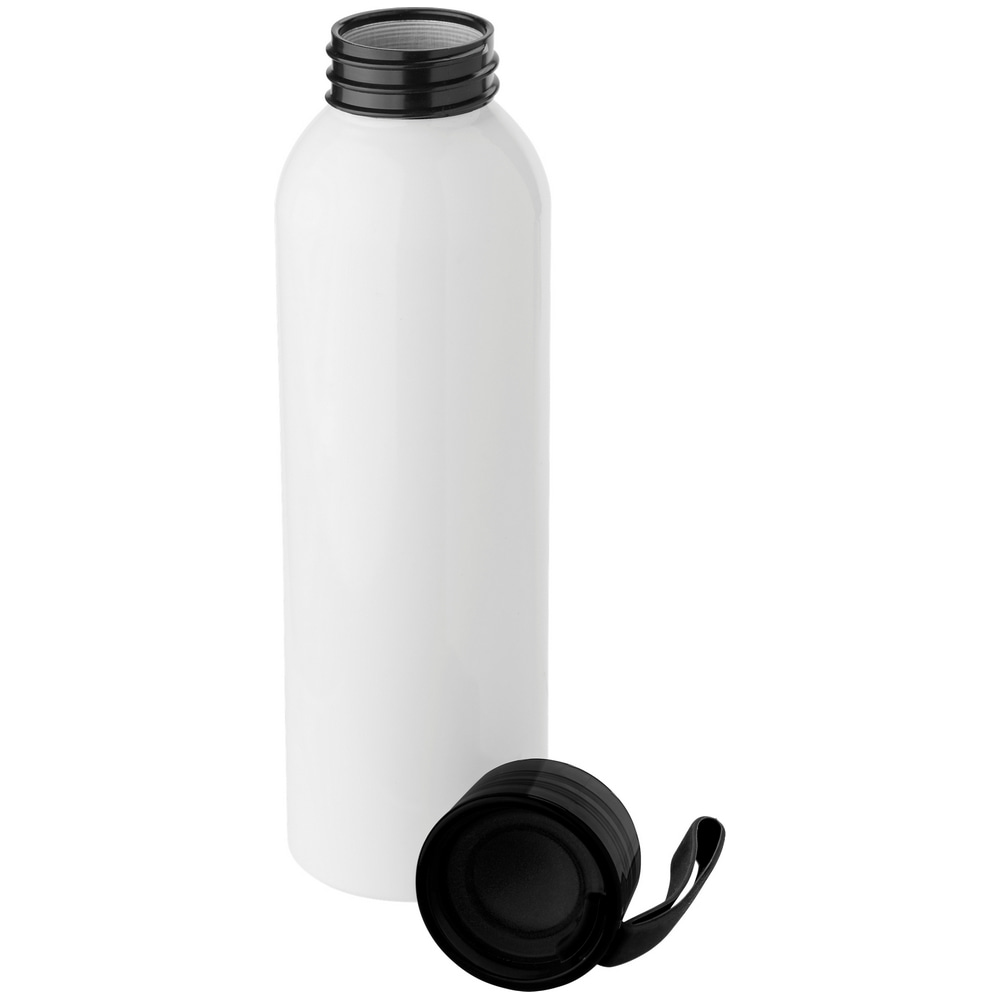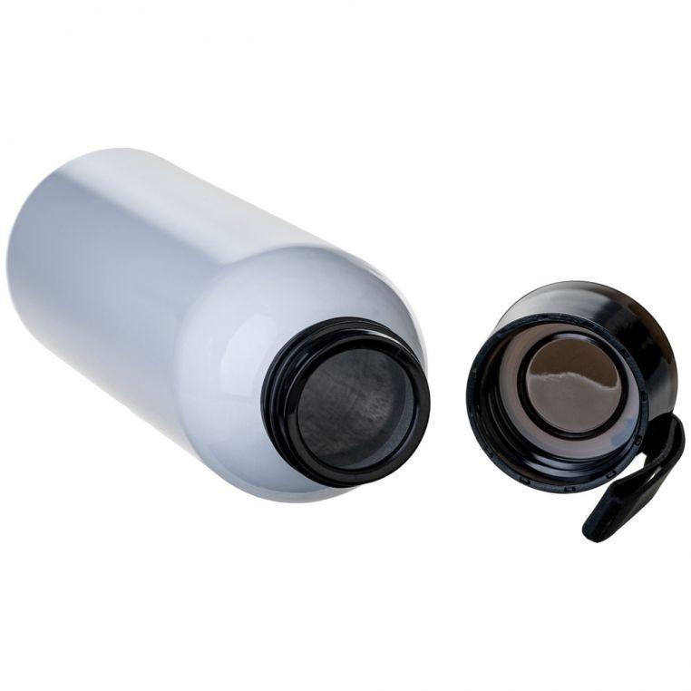 Бутылка в глянцевом алюминиевом корпусе. Оснащена прозрачной крышкой из полистирола и силиконовой лентой для удобства переноски. Удобный аксессуар для спорта и отдыха.