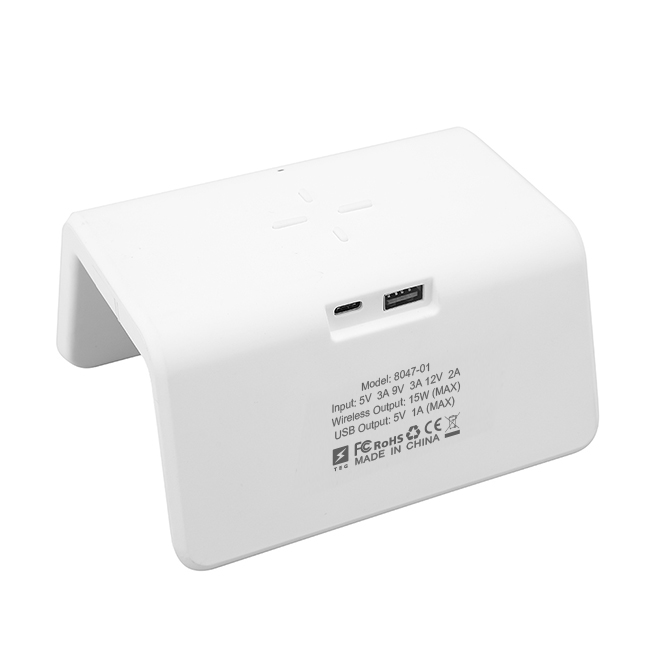 Функциональные часы с беспроводной зарядкой 15W. Режим времени 12/24 ч. Двойной звуковой сигнал будильника для пробуждения, функция отложения. 8-цветный световой ночник-лампа, USB-выход для зарядки дополнительных устройств, сенсорное управление, 4-уровневый режим яркости дисплея Аксессуары: кабель USB-A – Type C (1 метр) Инструкция по эксплуатации. Размер изделия 140х117х73 мм, вес 210 г.