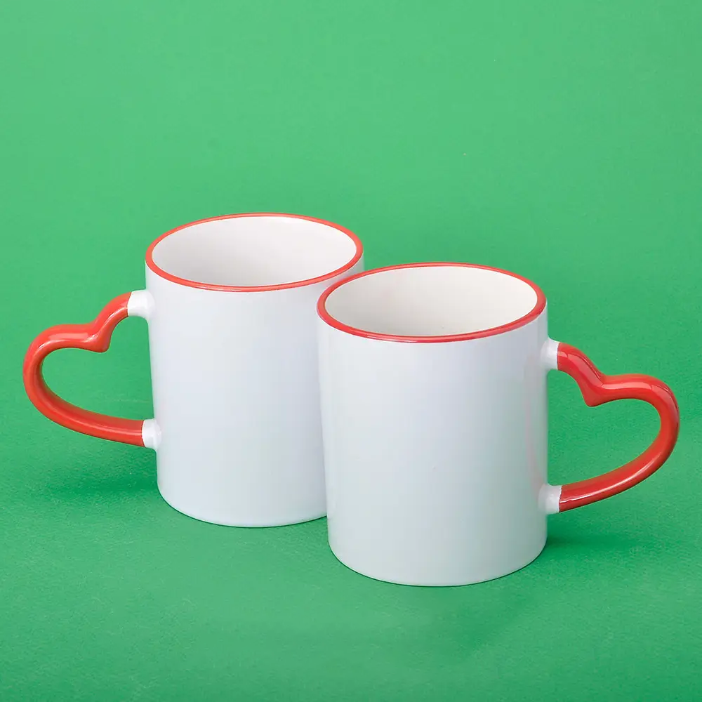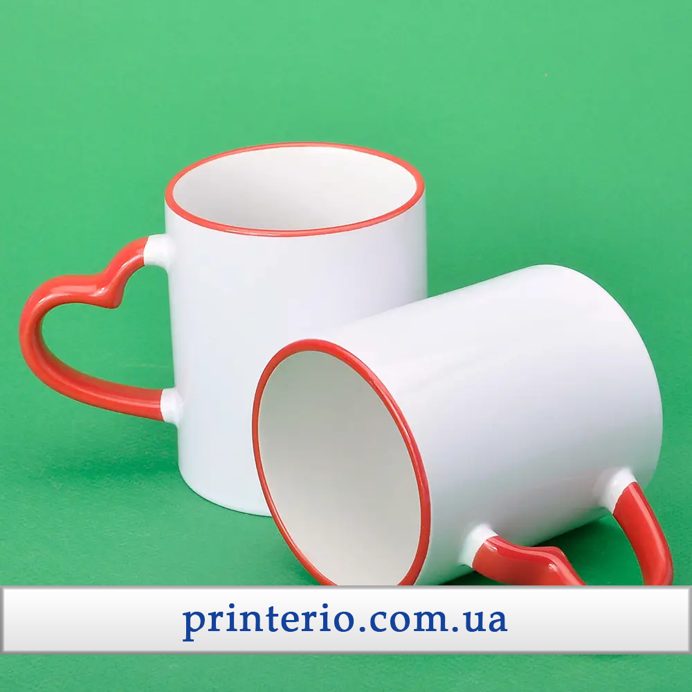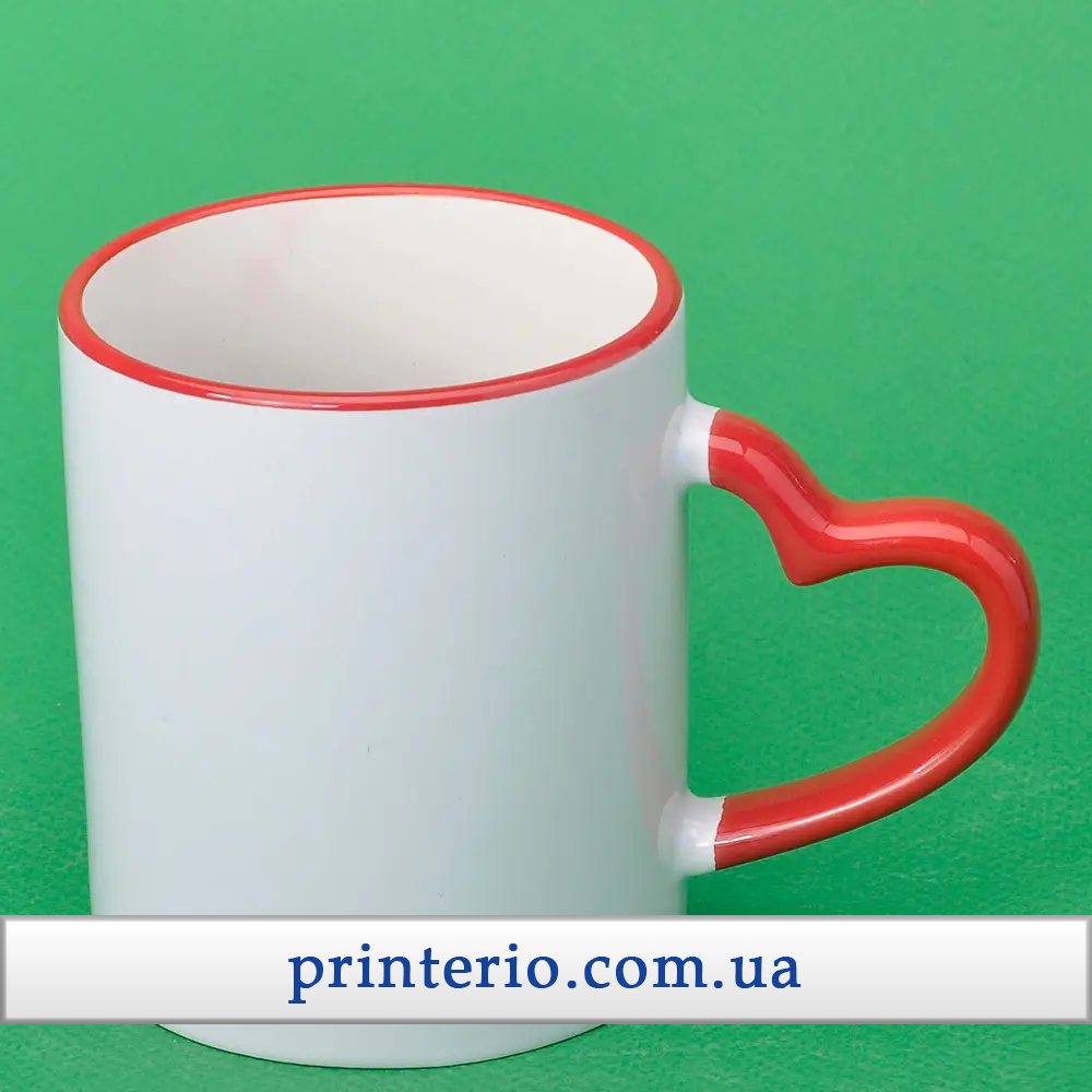Создайте свой шедевр с кружкой для сублимации Sublime с вашим логотипом, цветным ободком и ручкой в форме сердца на 330 мл, которая станет не просто аксессуаром, а настоящим произведением искусства с вашим уникальным дизайном!
