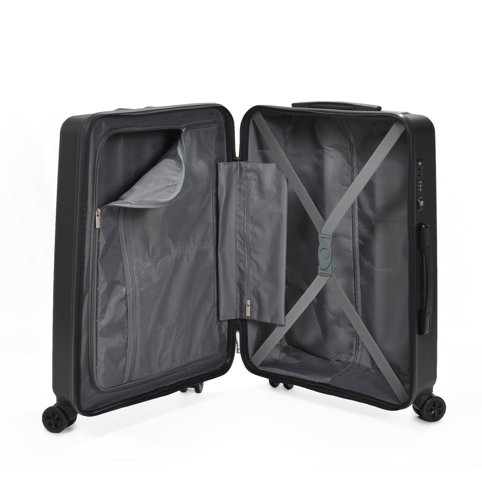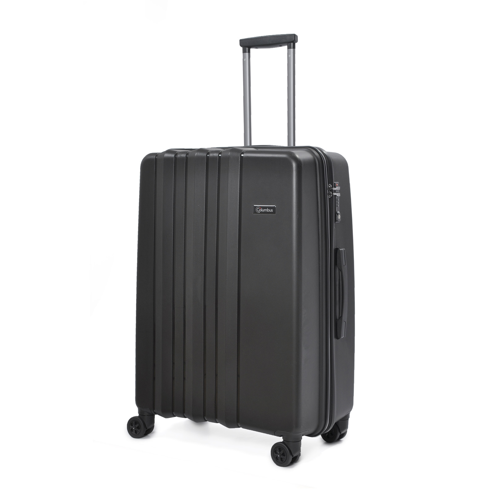 Сверхлегкий и крепкий чемодан на 8-ми (4х2) колесах TM Columbus. Оснащена кодовым замком системы TSA, алюминиевой телескопической ручкой с фиксаторами. Внутри обшита тканью, имеет 2 отделения, разделяемые диафрагмой и карман на молнии для мелких вещей; эластичные пояса для фиксации вещей.