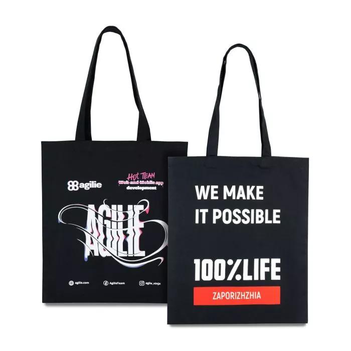 - Ткань: черный хлопок, конвас, 220 г/кв.м (черная сумка); неотбеленный хлопок, канвас 220 г/кв.м (бежевая сумка)
