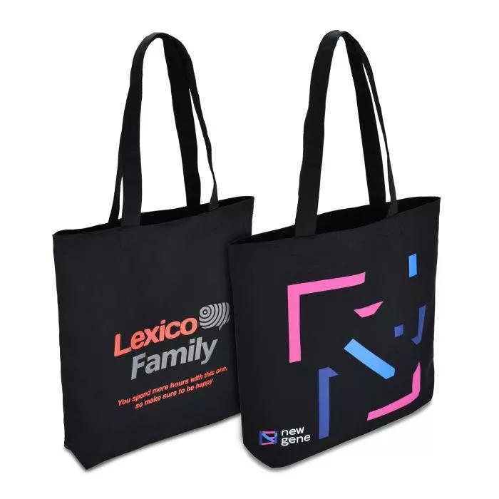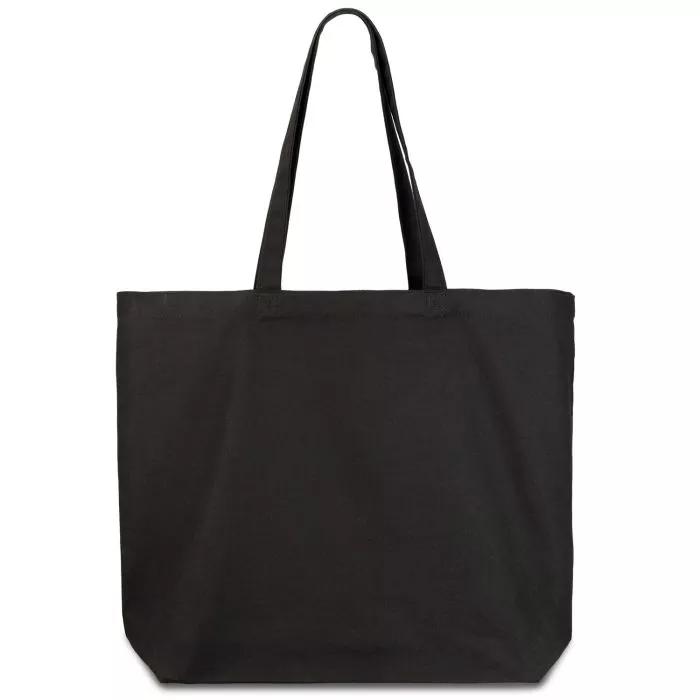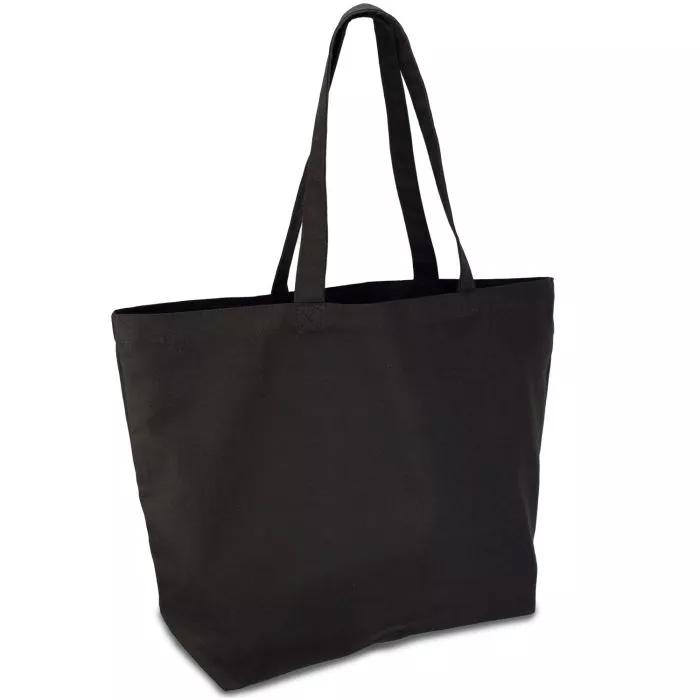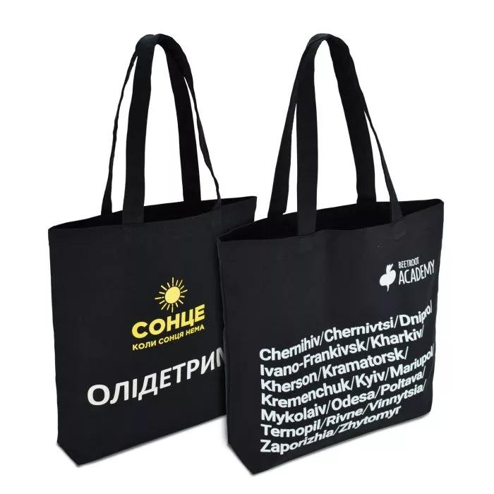 Эко-сумка сшита из высококачественного хлопка черного цвета.