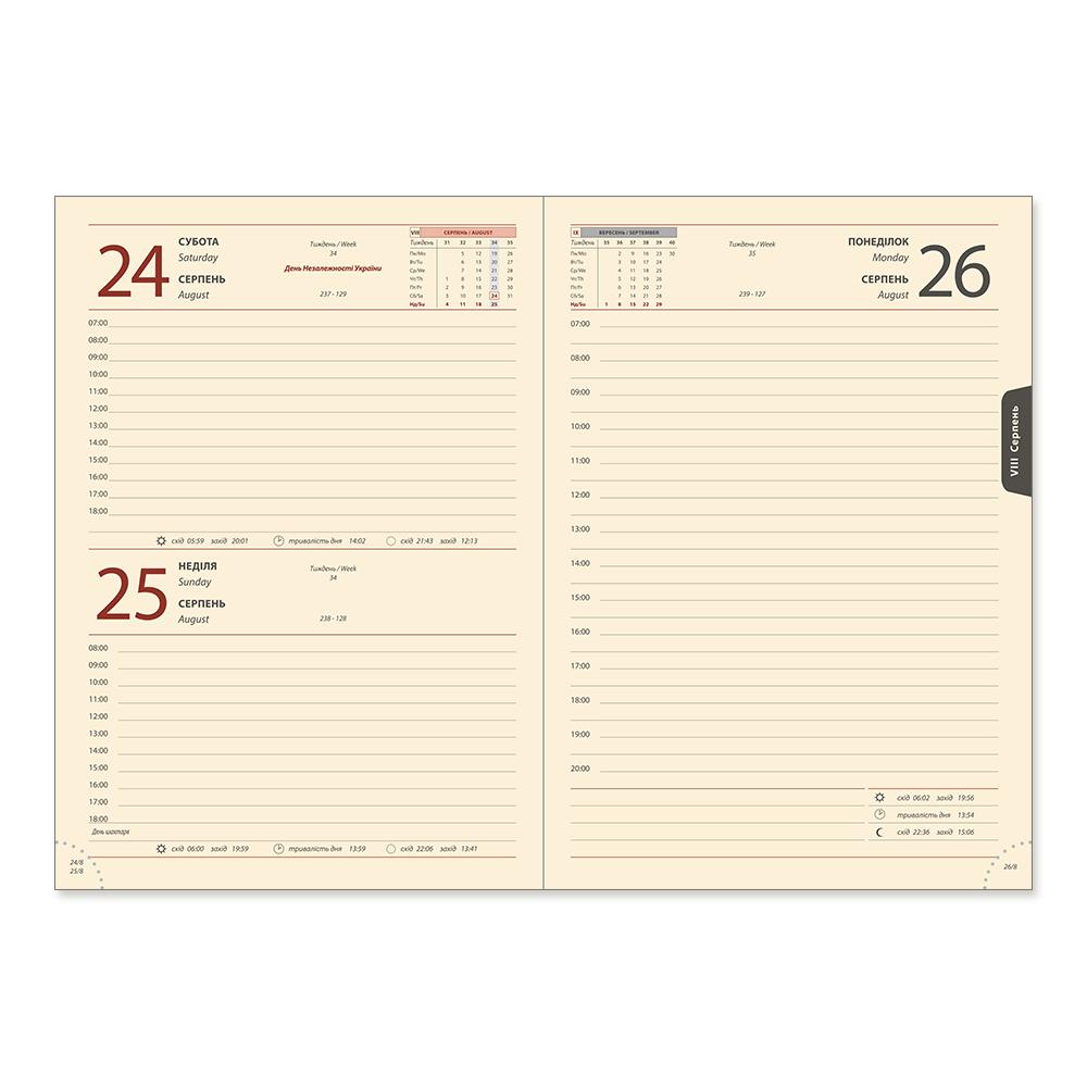 Ежедневник датированный, с индивидуальной обложкой, формата А5. Кол-во листов: 176л. Блок из офсетной белой или кремовой бумаги 70 г/м².