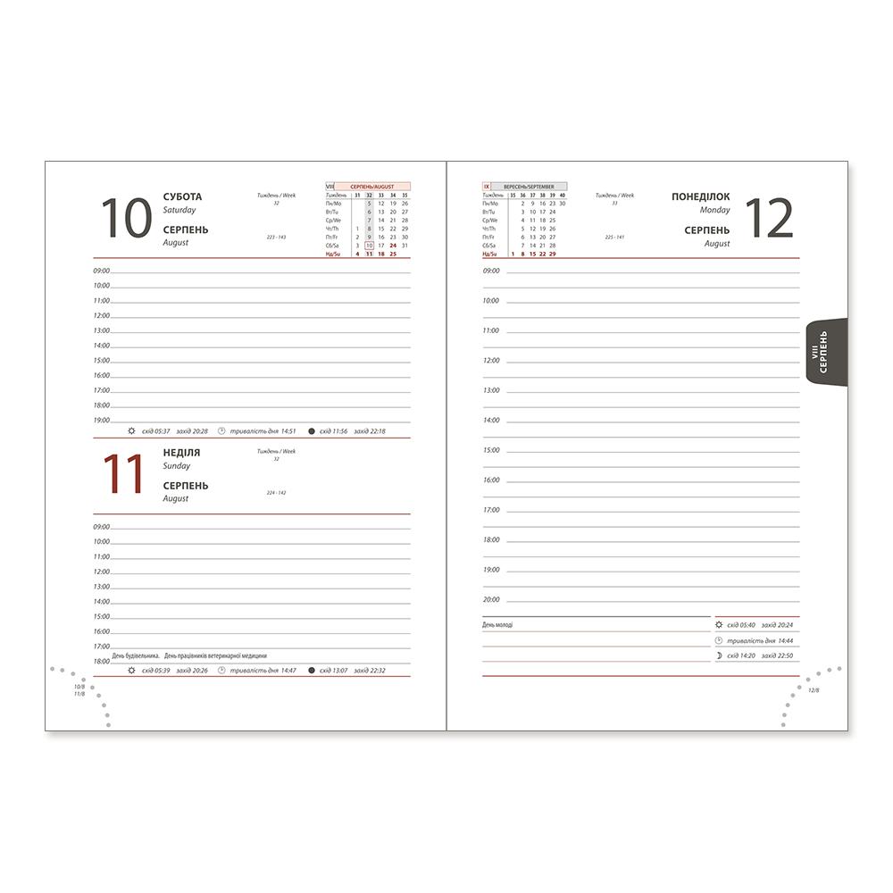 Датированный ежедневник формата А6. Количество листов: 176 л. Блок из офсетной белой бумаги плотностью 70 г/м².