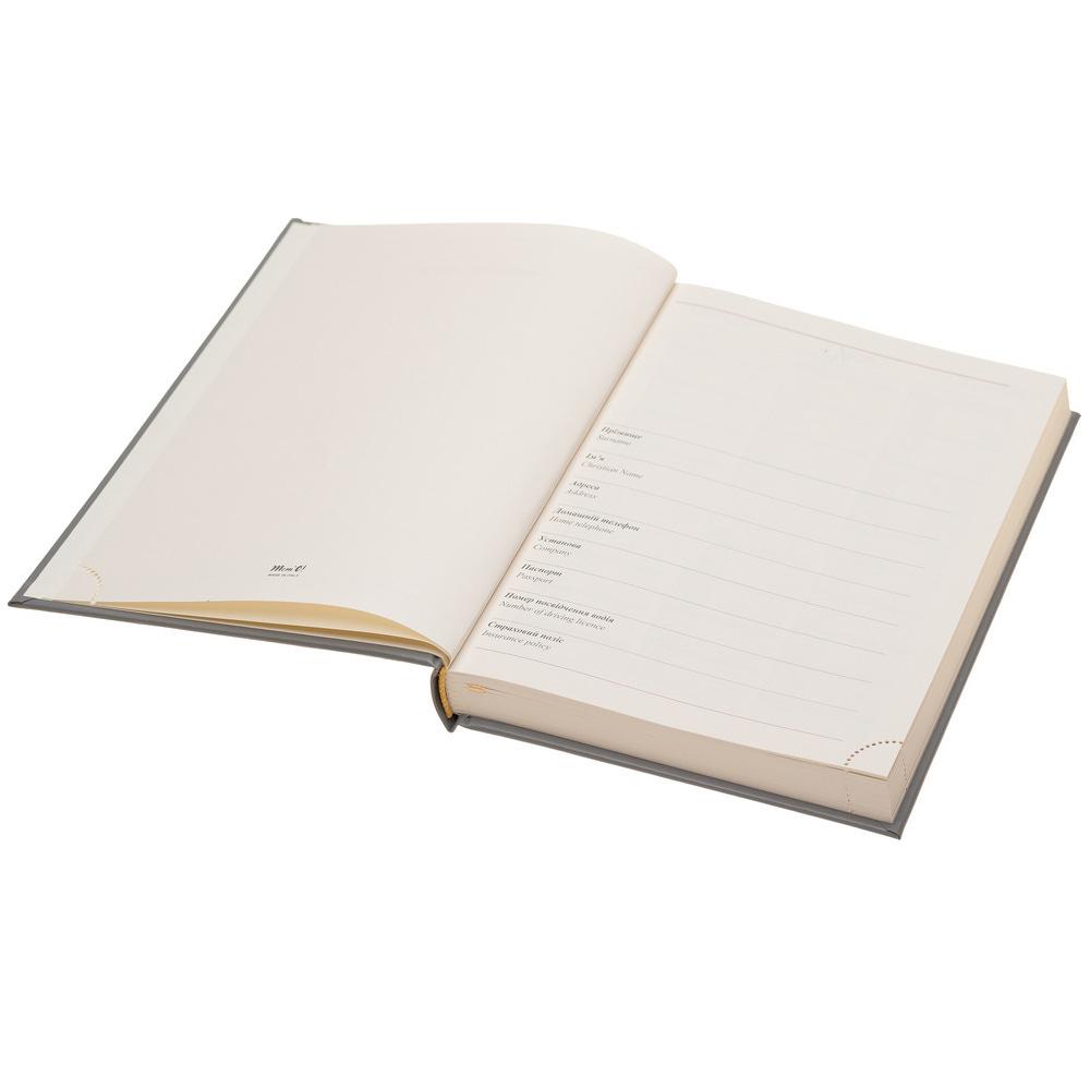 Недатированный ежедневник. Формат А5 (145 x 205 мм). Бумага сертифицирована FSC. Твердая обложка из высококачественного итальянского кожзама.