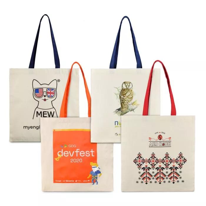 Тканевая эко сумка из хлопка отлично подходит под нанесение шелкотрафаретной печати.