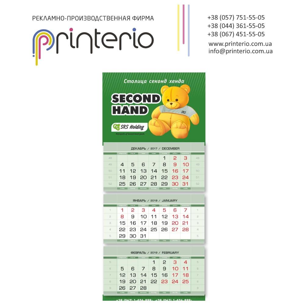 Предлагаем выполнить ваш корпоративный квартальный календарь. Большое поле под нанесение любого изображения + ваш логотип и контактная информация. Прекрасное качество печати, мы готовы выполнить любые тиражи и дизайны. Обложка из картона 270 г/м2 и три листа календарного блока. Экономьте на больших тиражах, свяжитесь с менеджером для просчета.