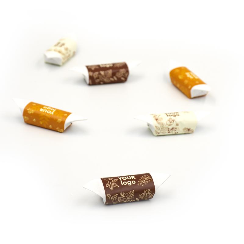Конфета KROCK & GO с логотипом, 13 г — это вкусное сочетание арахисово-карамельной пасты в нежной шоколадной глазури. Благодаря компактным размерам (85 × 23 × 15 мм) и яркой полноцветной упаковке из мелованной бумаги (90 г), эта сладость идеально подходит для рекламных кампаний, выставок или брендированных подарочных наборов.