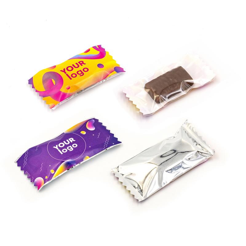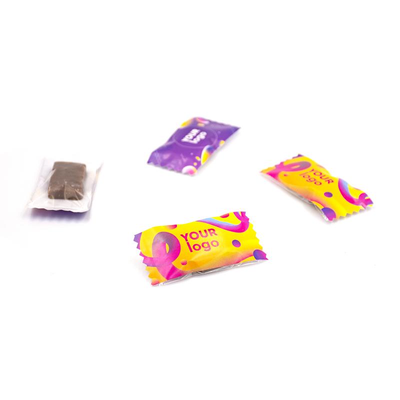 Конфета "Шоколапка" с логотипом (6 г) – это небольшая сладкая конфета с нежным тоффи и арахисом в глазури. Брендированная упаковка позволяет добавить цветной логотип, подходящий для корпоративных подарков или рекламы на мероприятиях. Размер упаковки – 62×36×8 мм, срок годности – 12 месяцев. Предлагается выбор между прозрачной и металлизированной пленкой.