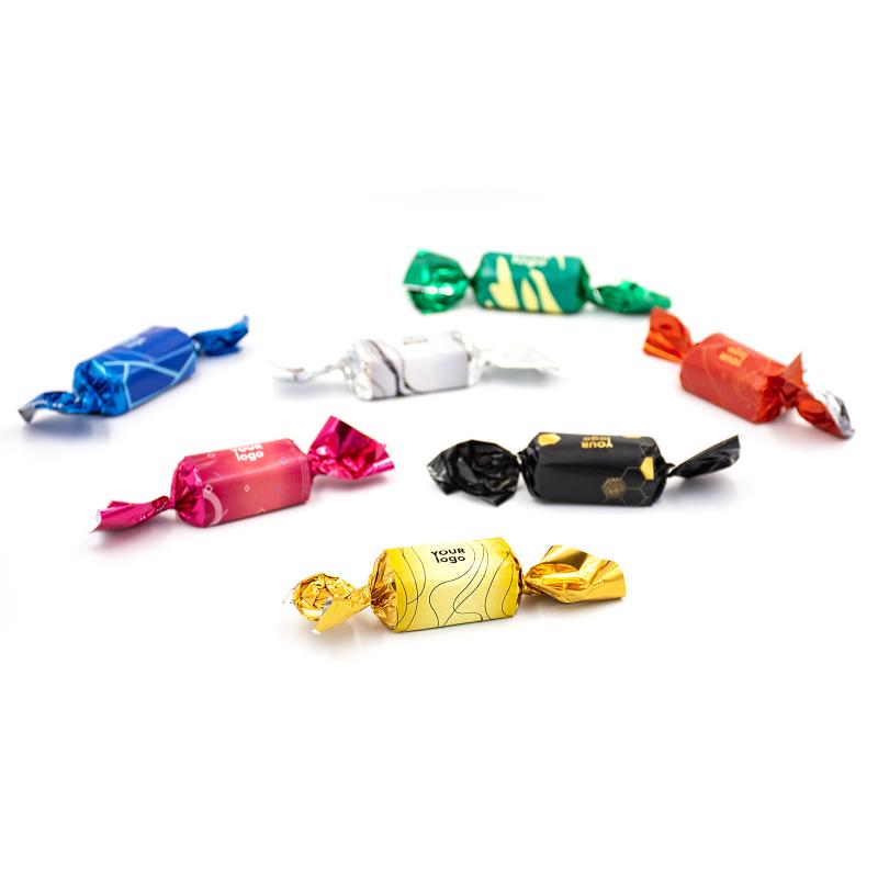 Конфета Snickers с логотипом, 20 г — это вкусное сочетание арахиса, нуги и карамели в молочном шоколаде, завернутое в яркую твист-плёнку с индивидуальным полноцветным логотипом.