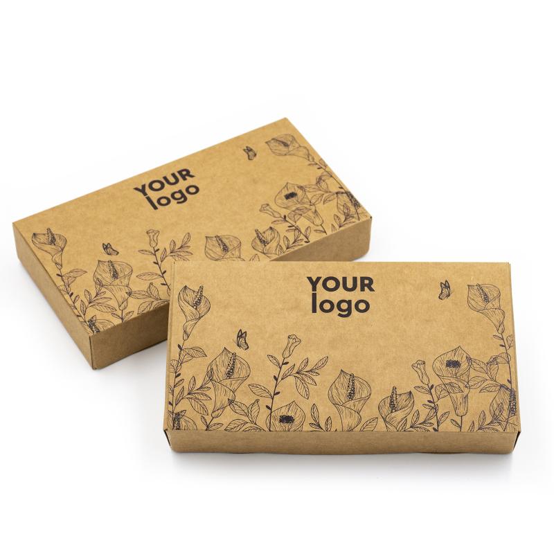 Размер упаковки составляет 187 × 132 × 19 мм. Покупателям предоставляется выбор ламинирования (матовое или глянцевое), что добавляет прочности и придает более изысканный вид. Срок годности конфет – до 12 месяцев, а минимальные сроки производства составляют от 5 до 14 рабочих дней, в зависимости от тиража.