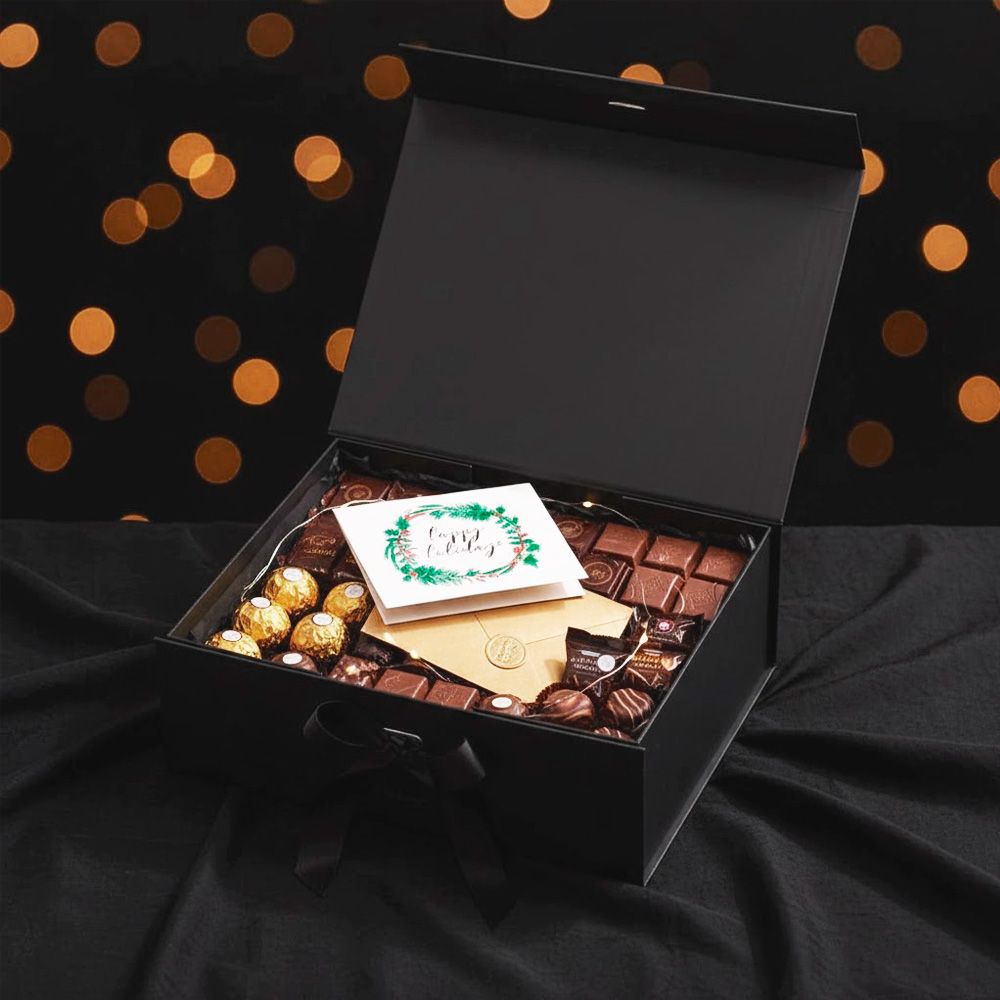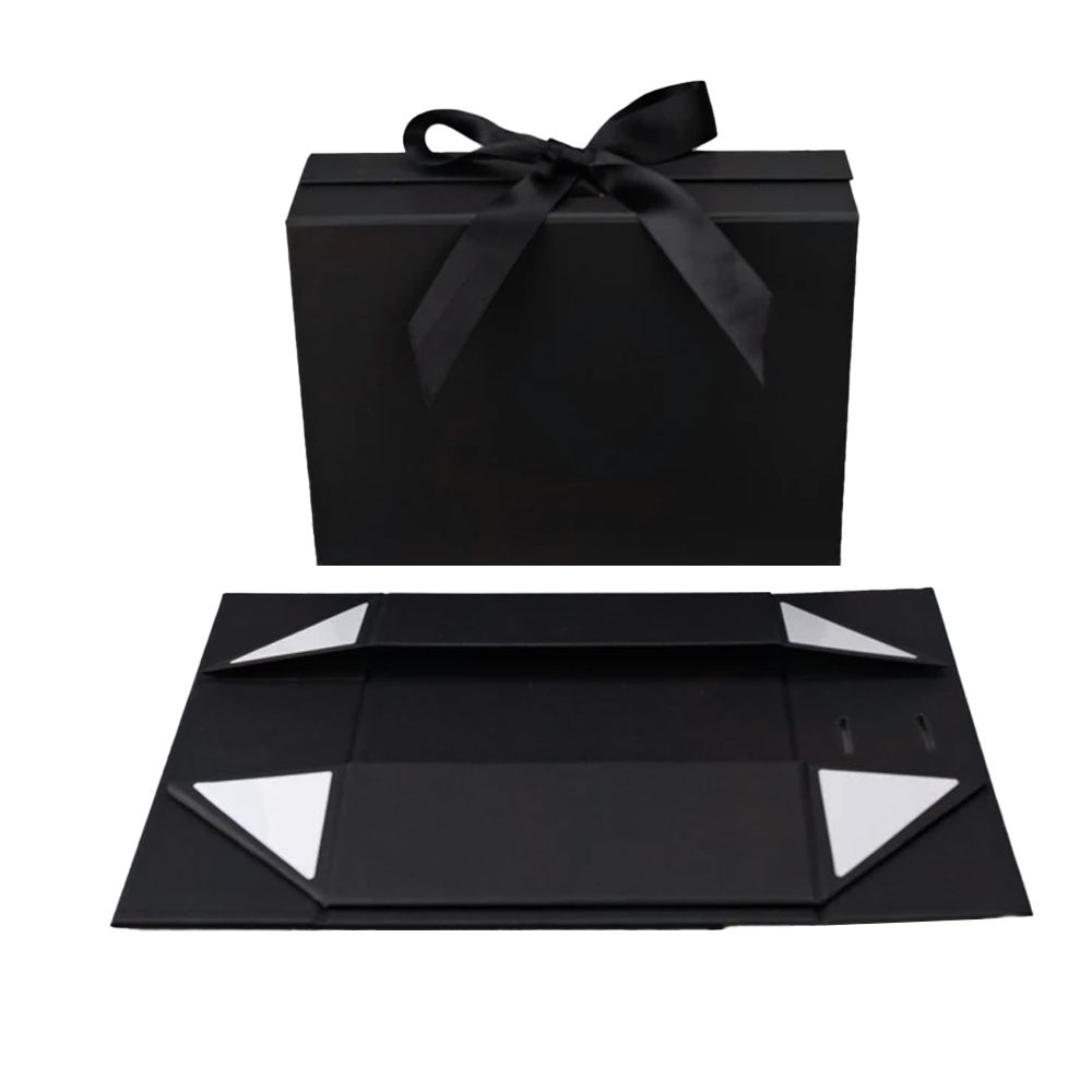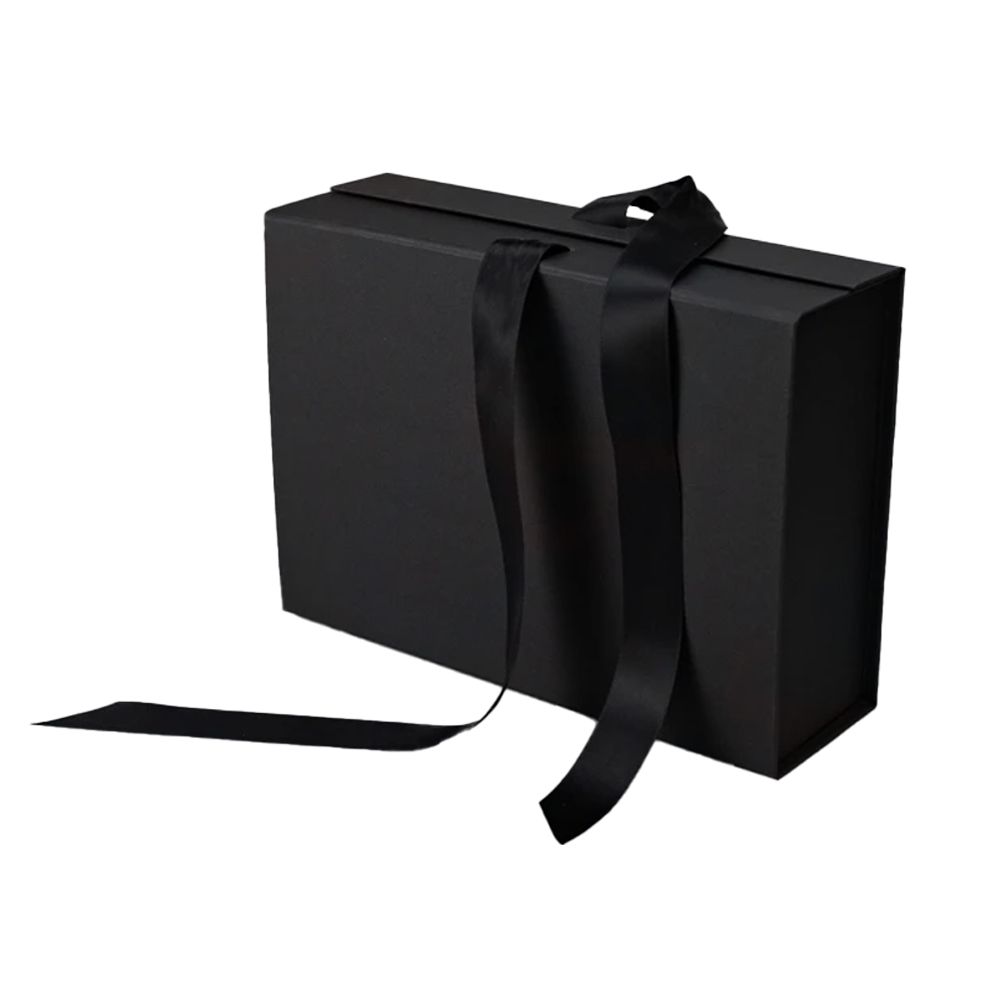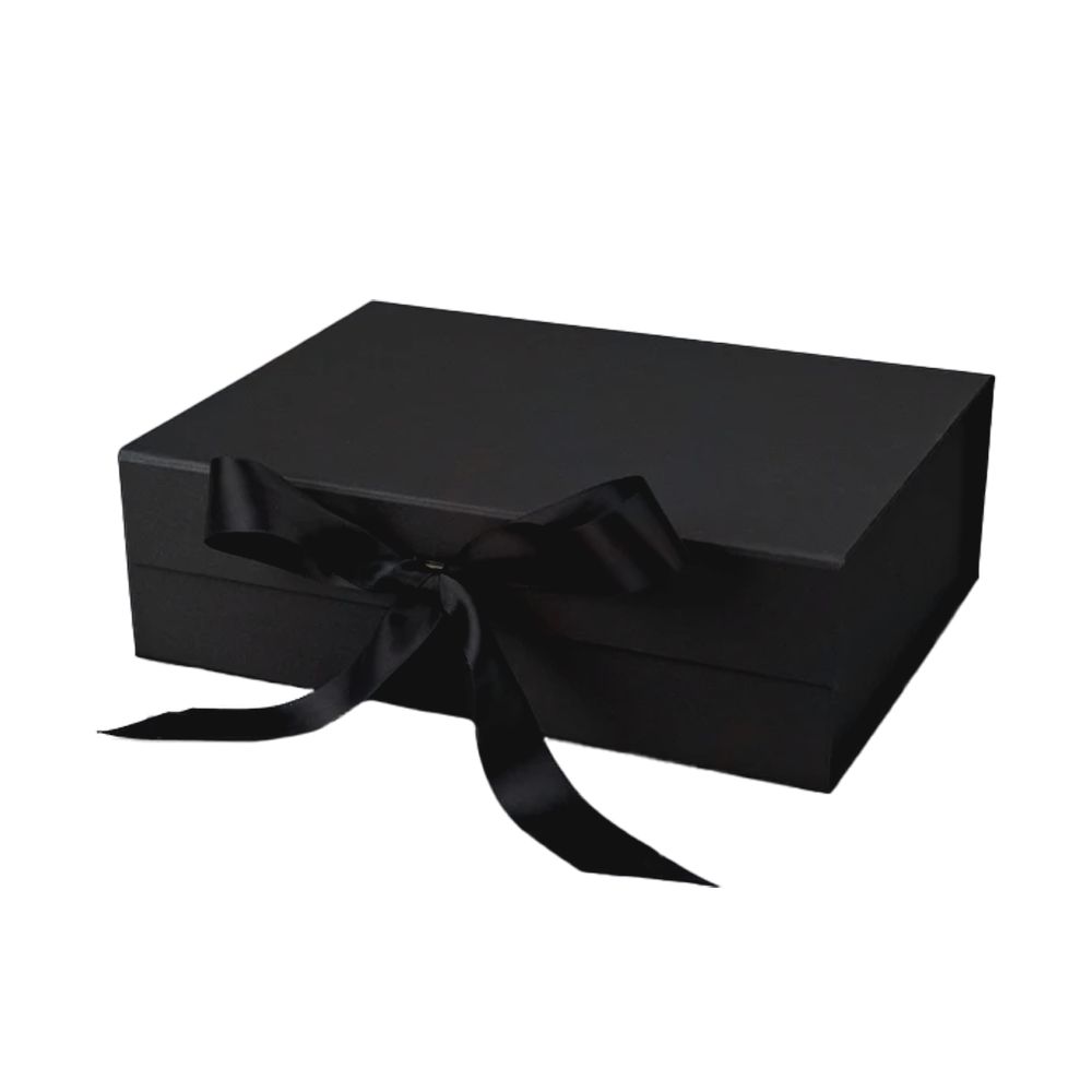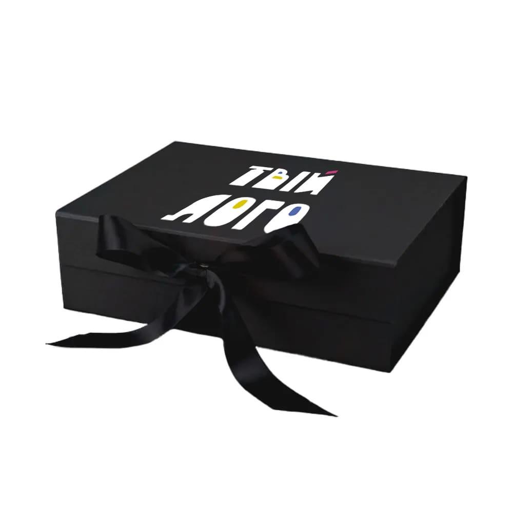 Декорирована атласной лентой, придающей изысканный и праздничный вид. При сборке используются самоклеящиеся ленты, обеспечивающие быструю и надёжную фиксацию коробки. Подходит для нанесения логотипа и брендированного дизайна.