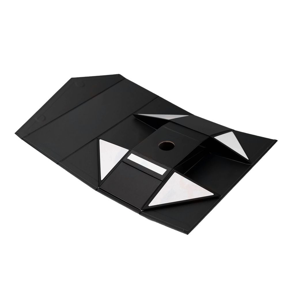 Особый акцент — оригинальная форма крышки с треугольным срезом, придающая коробке современный и элегантный облик. Оснащена магнитной застёжкой, подчёркивающей премиальный статус упаковки. Подходит для нанесения логотипа и брендированного оформления.