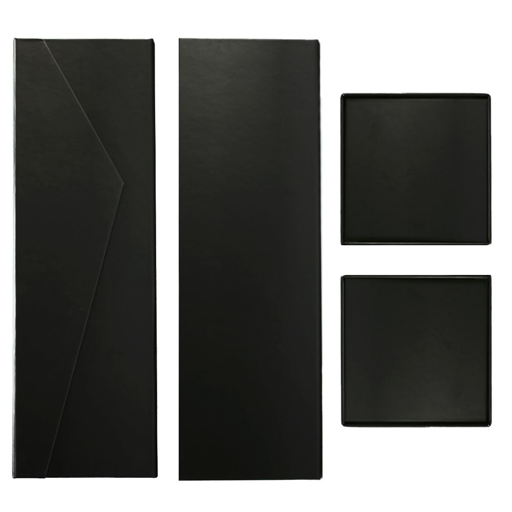 Коробка изготовлена из прочного картона плотностью 1200 г/м², покрытого мелованной бумагой 157 г/м² C2S с матовой ламинацией, которая придаёт изделию изысканный внешний вид и защищает поверхность от царапин.