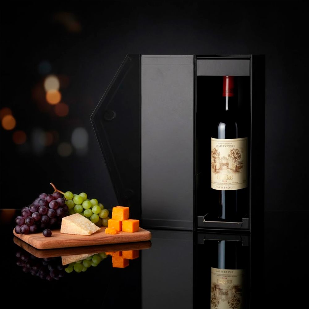 Имеет складную конструкцию (Collapsible Wine Box) с угловой склейкой (corner glued), что обеспечивает надёжность и удобство в использовании.