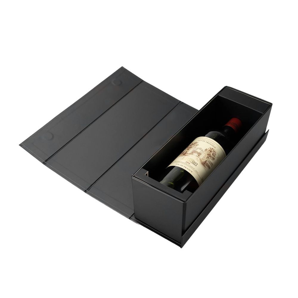 Коробка имеет складную конструкцию Collapsible Wine Box с угловой склейкой (corner glued), что обеспечивает надёжность и удобство в использовании.