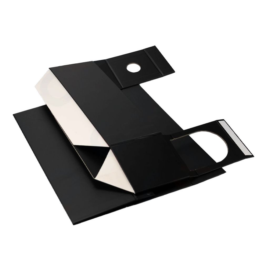 Изготовлена из прочного картона плотностью 1200 г/м², покрытого мелованной бумагой 157 г/м² C2S с матовой ламинацией, которая придаёт коробке элегантный внешний вид и защищает поверхность от царапин.