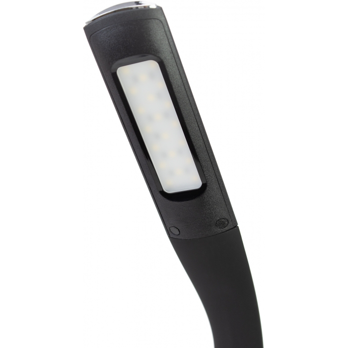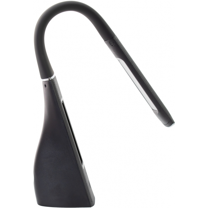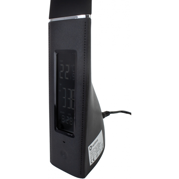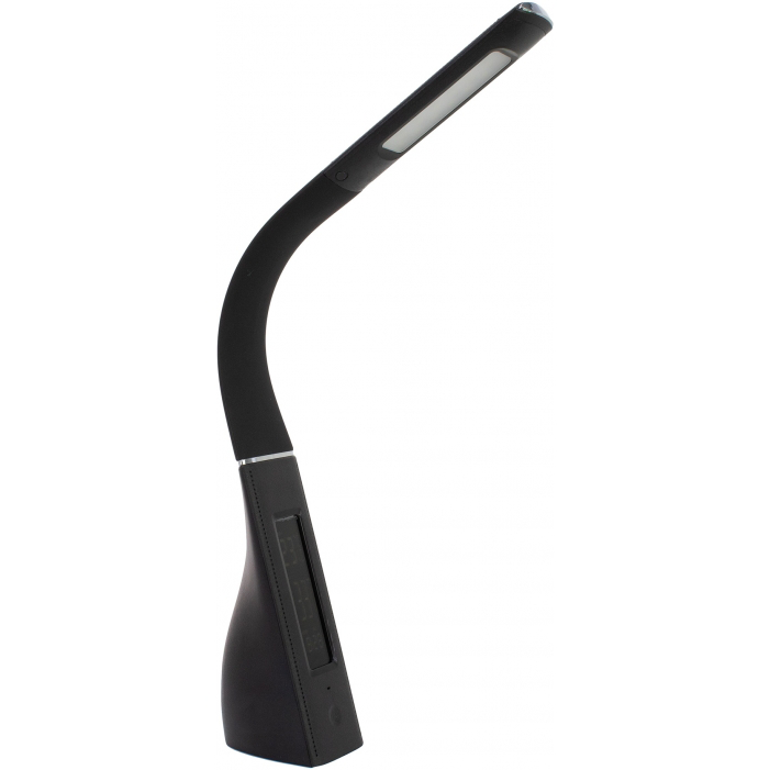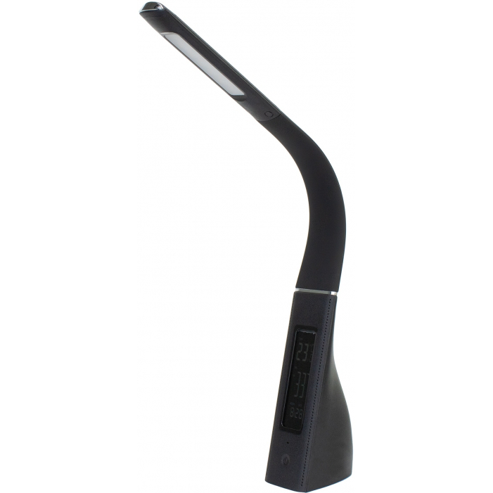 Многофункциональная настольная лампа. Стильный дизайн корпуса, хромированные элементы, легко изменяет угол освещения. Материалы: АБС-пластик с покрытием SOFT TOUCH, кожзаменитель. Номинальная мощность: 7 Вт. Вход: 1А. Источник света: LED 3000–6000К, SMD LED. Дополнительный функционал: дисплей с отображением температуры, времени, даты. Функция будильника.