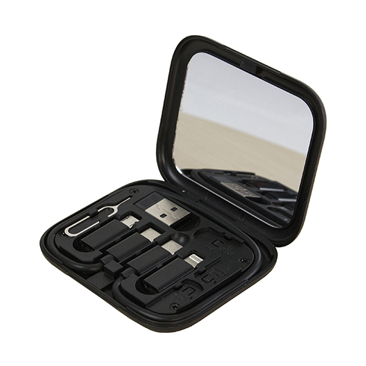 Набор переходников MILAN 9 в 1 с зеркальцем – стильный и практичный аксессуар для зарядки и синхронизации современных устройств. В компактном кейсе собраны самые популярные разъёмы: Type-C, Lightning, Micro USB, а также кабели и переходники с поддержкой быстрой зарядки (до 60W) и передачи данных.