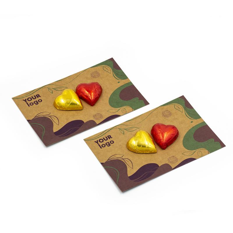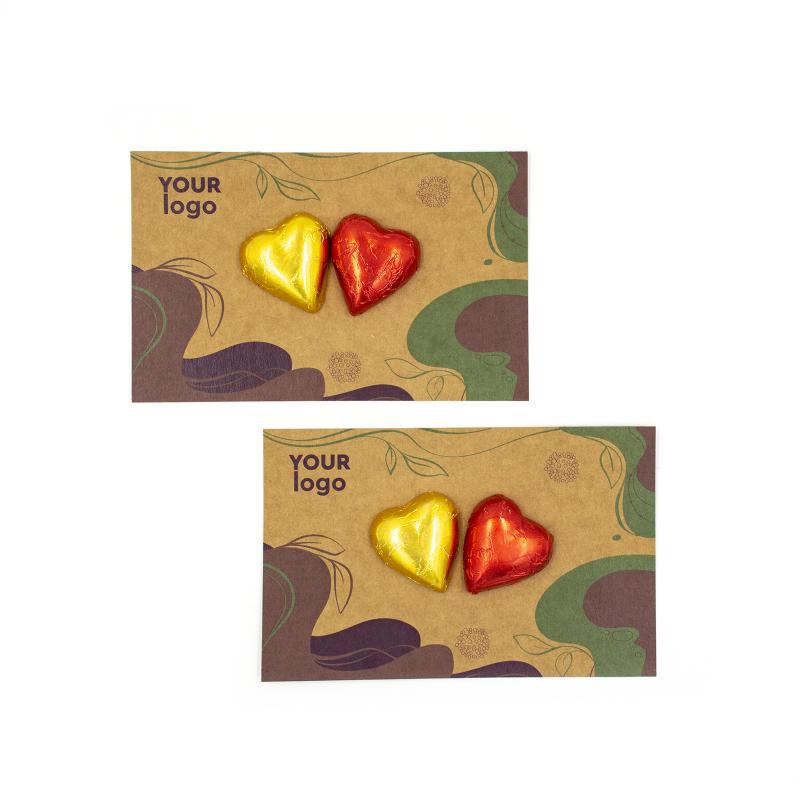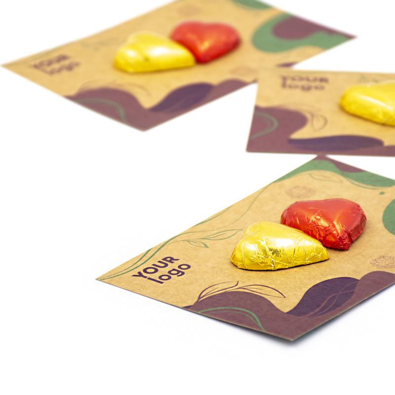 Открытка с логотипом (15 г, крафт) – брендированная шоколадная открытка из премиального немецкого молочного или черного шоколада. Изготовлена в экологичной крафтовой упаковке с полноцветной печатью, она имеет размер 140 х 90 х 7 мм и служит идеальным корпоративным сувениром.