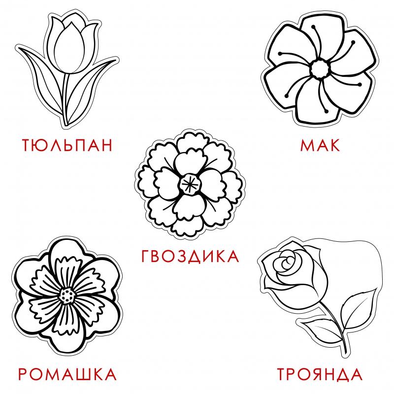 Дизайн открытки представлен в виде цветов: роза, тюльпан, гвоздика, ромашка или мак — на выбор.