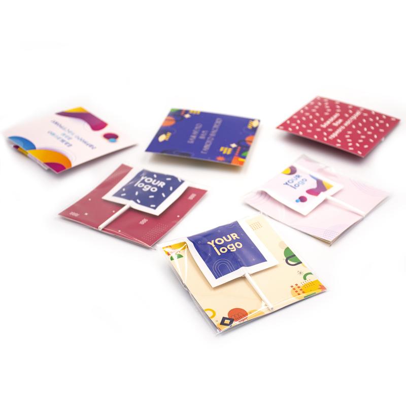 Подарите сладкий комплимент или подчеркните корпоративный стиль с помощью оригинальной открытки с логотипом, которая сочетает в себе вкусную конфету и полноцветный дизайн. Идеально подходит для презентаций, выставок, промоакций или в качестве приятного сувенира для клиентов и партнёров.