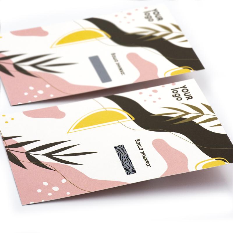 Подарочная открытка с отрывной частью и скретч-слоем — идеальный вариант для акций, розыгрышей или брендирования.