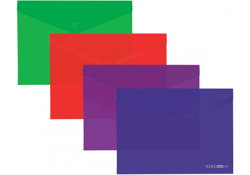 Папка-конверт формата А4 с глянцевой фактурой, изготовлена из полипропилена плотностью 120 мкм. Закрывается на удобную кнопку, что обеспечивает надёжное сохранение документов и защищает их от загрязнений и повреждений. Идеально подходит для офисного использования, учёбы или домашнего архива.